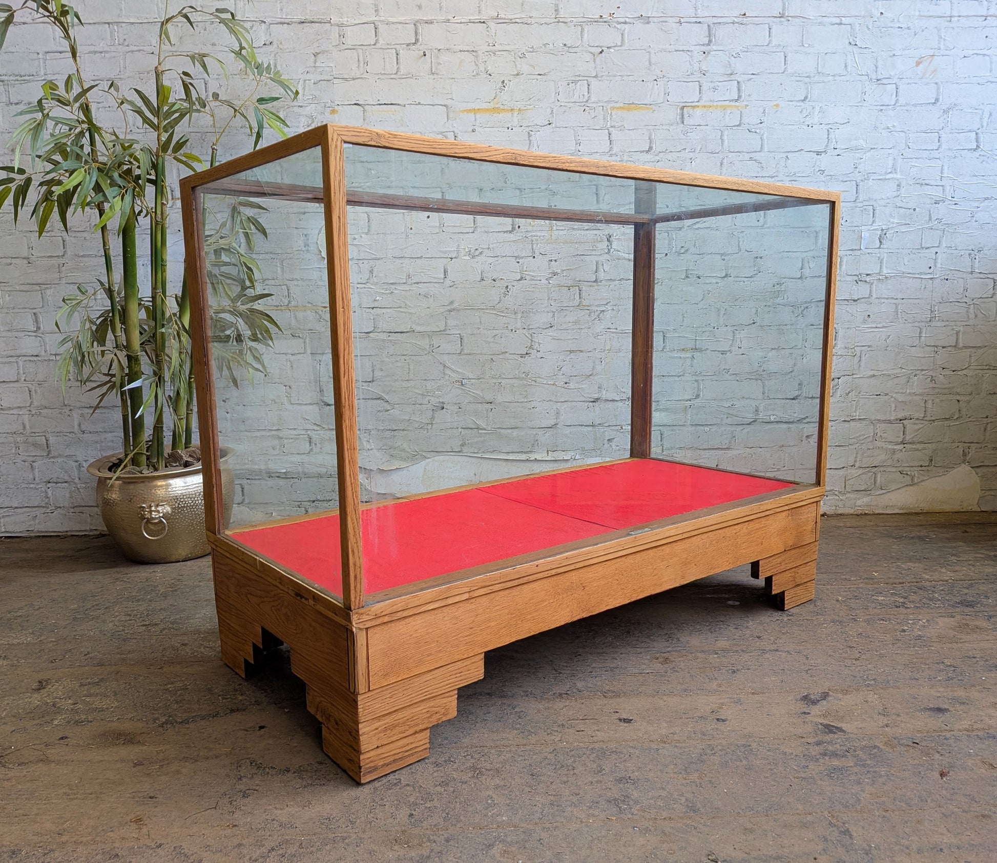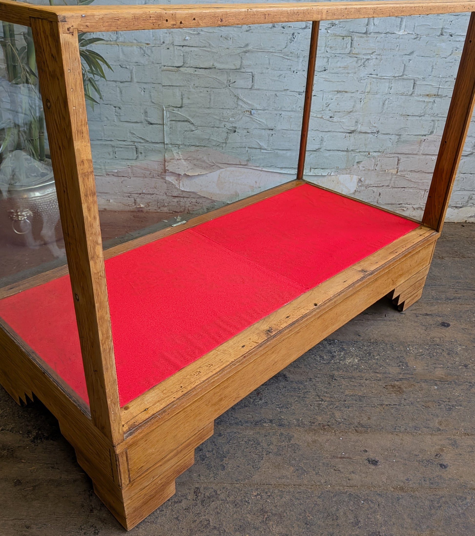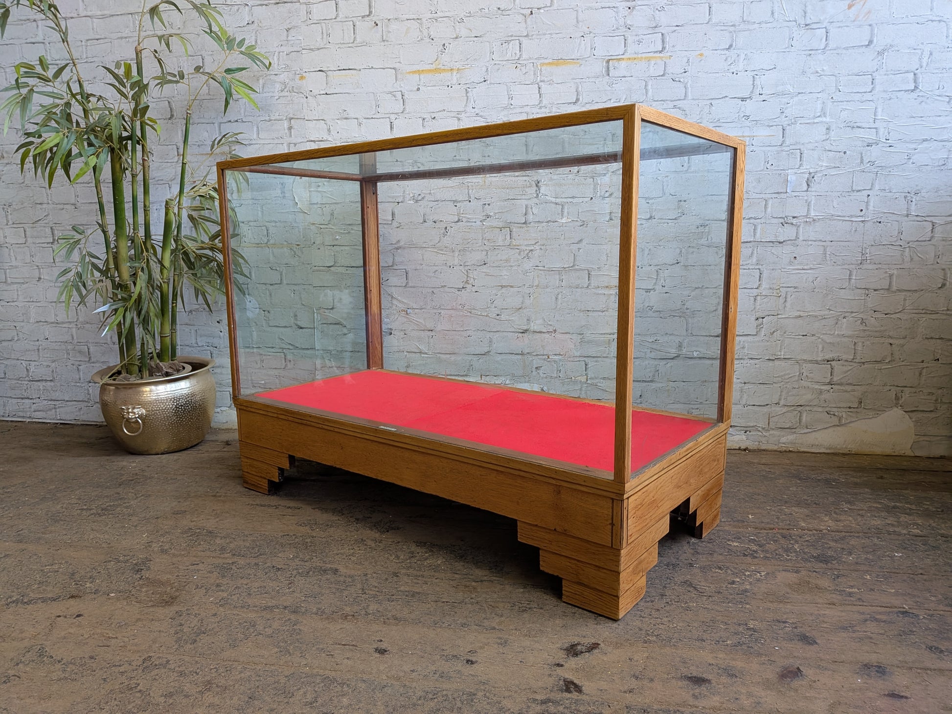 1920s 30s Vintage Art Deco Oak Glazed Haberdashery Shop Display Counter Cabinet