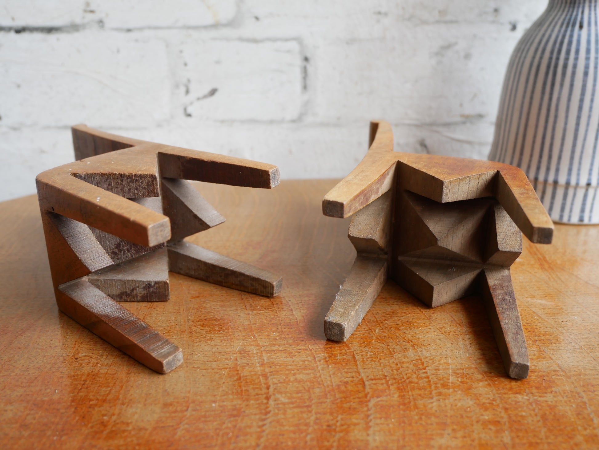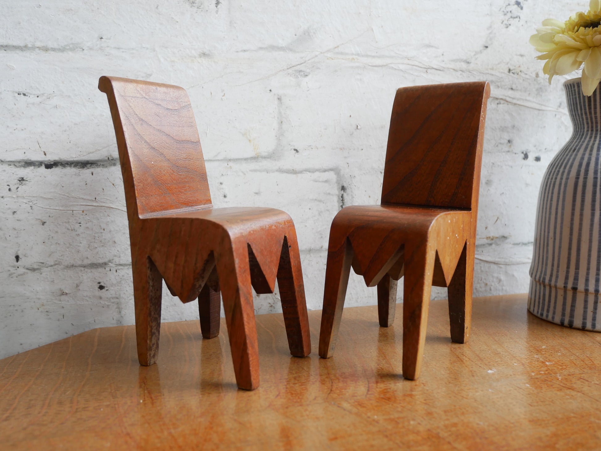 2 Vintage Mid Century Homemade Handmade Folk Art Carved Miniature Chairs