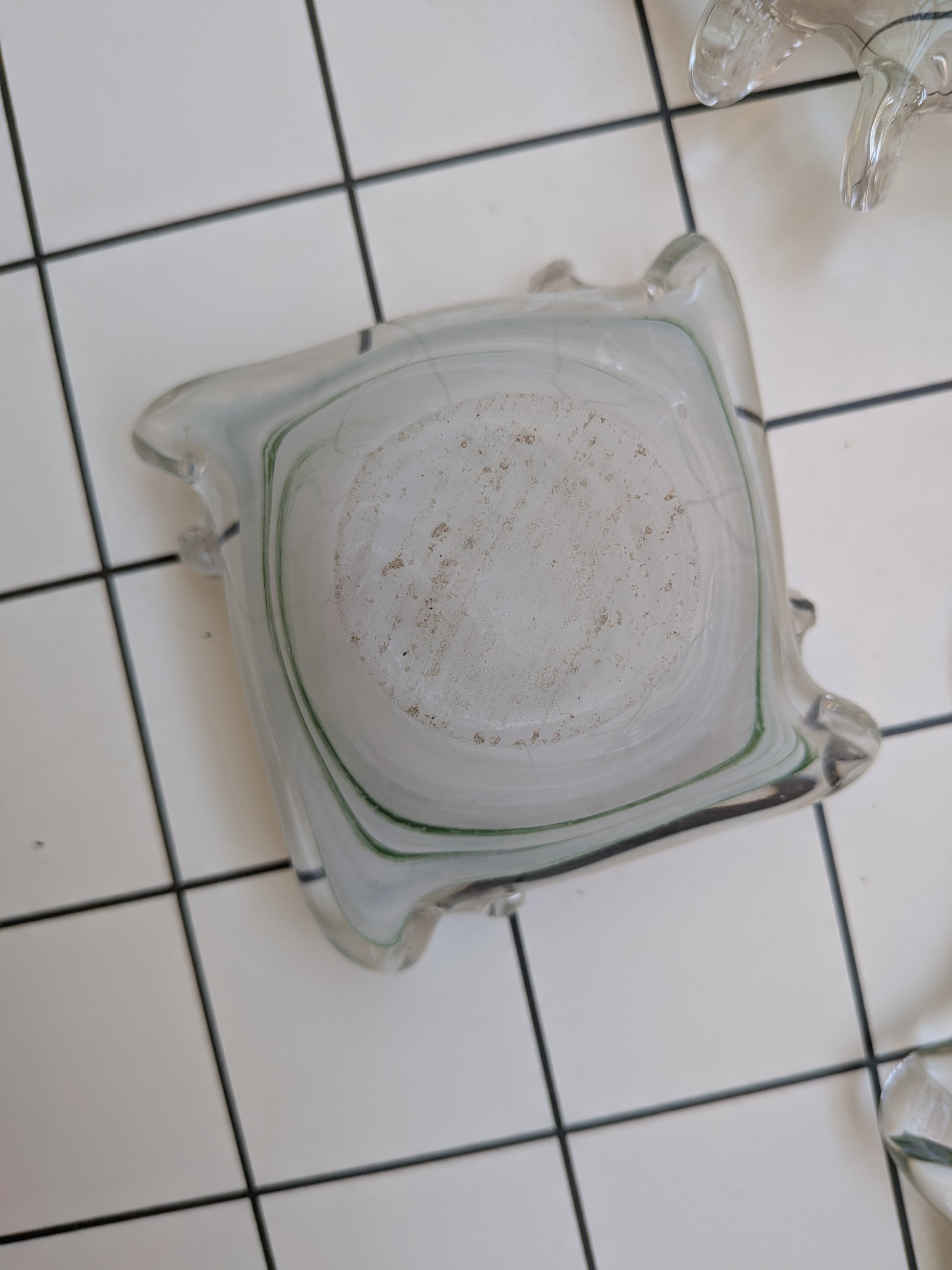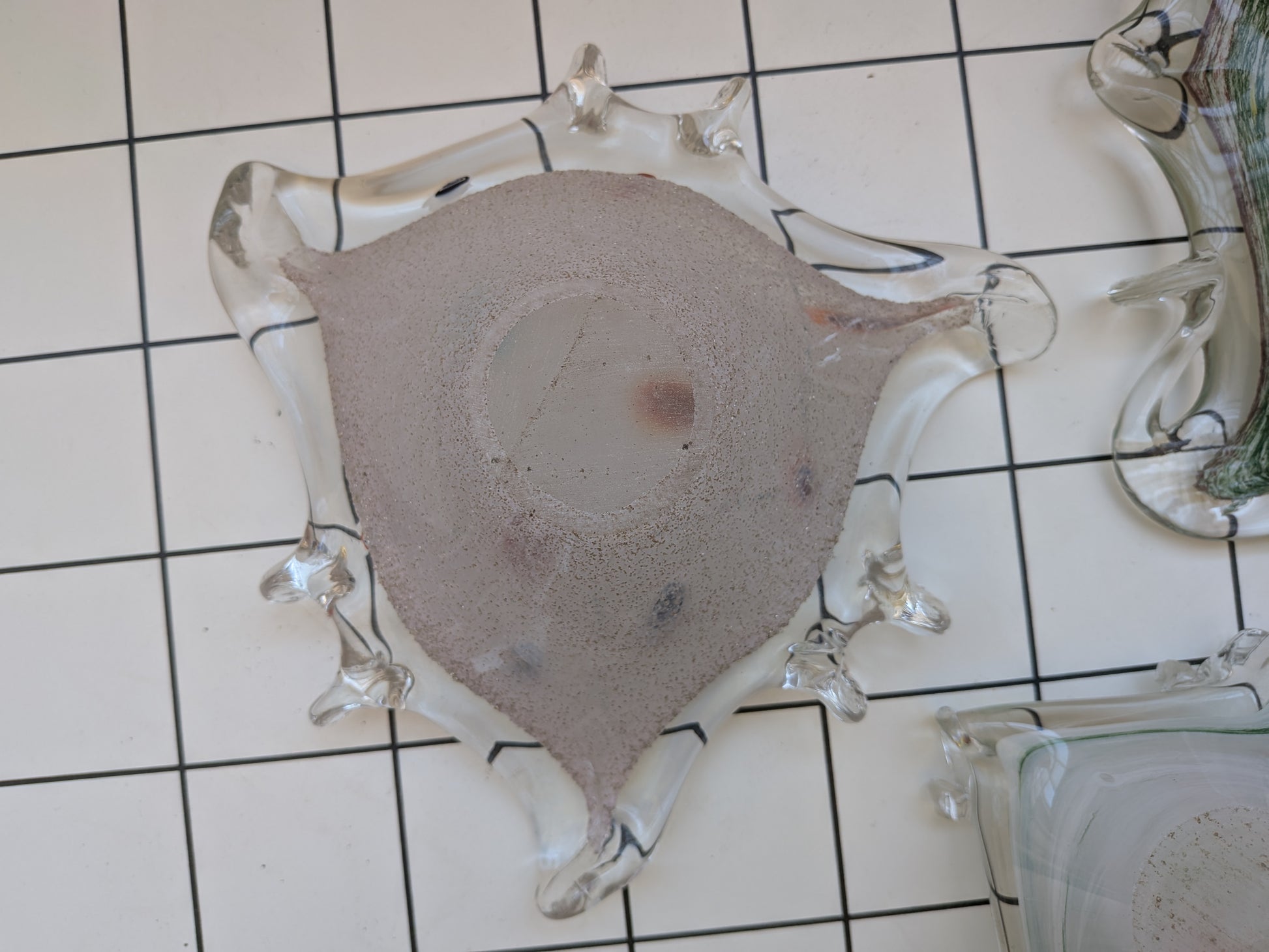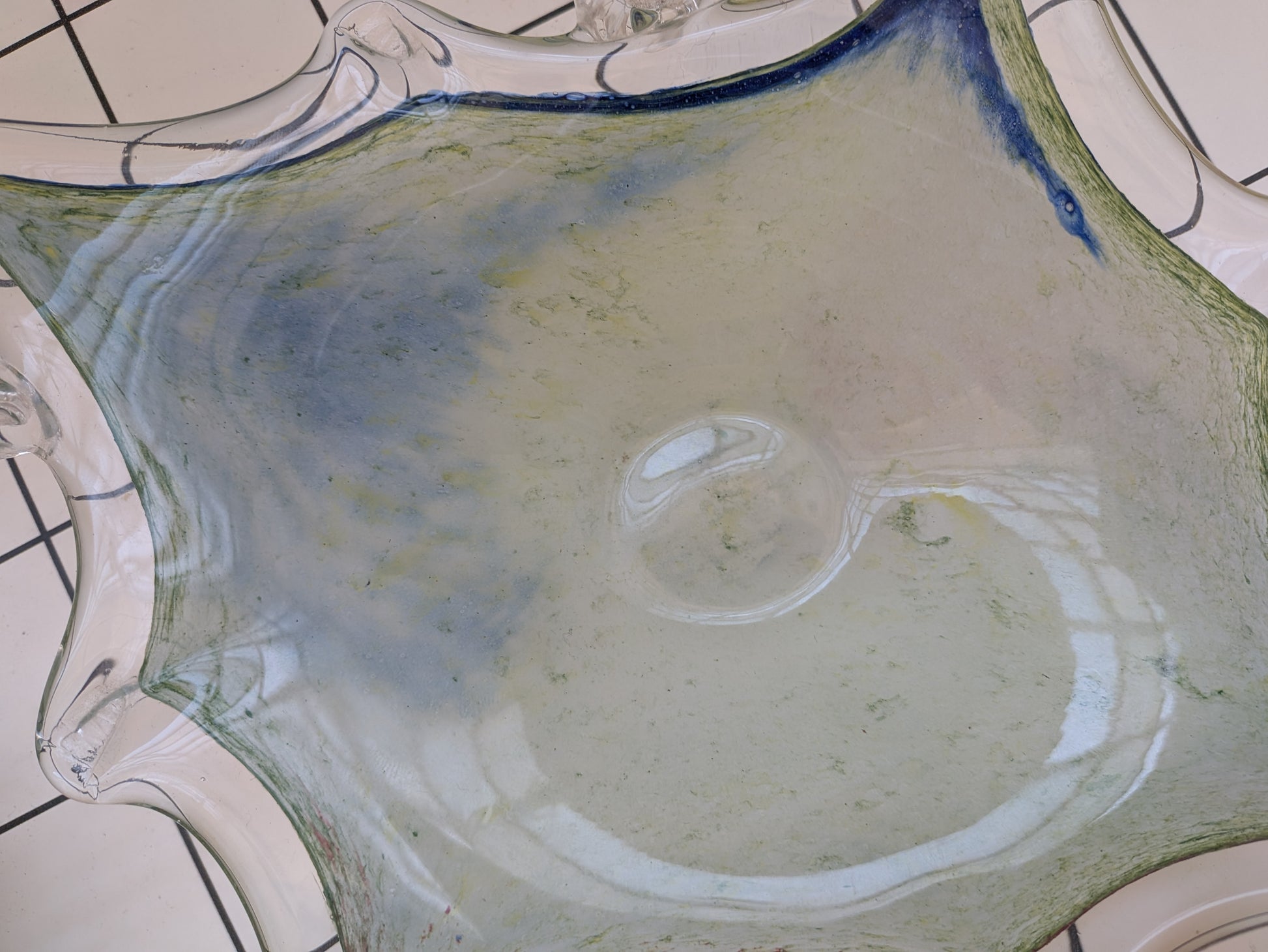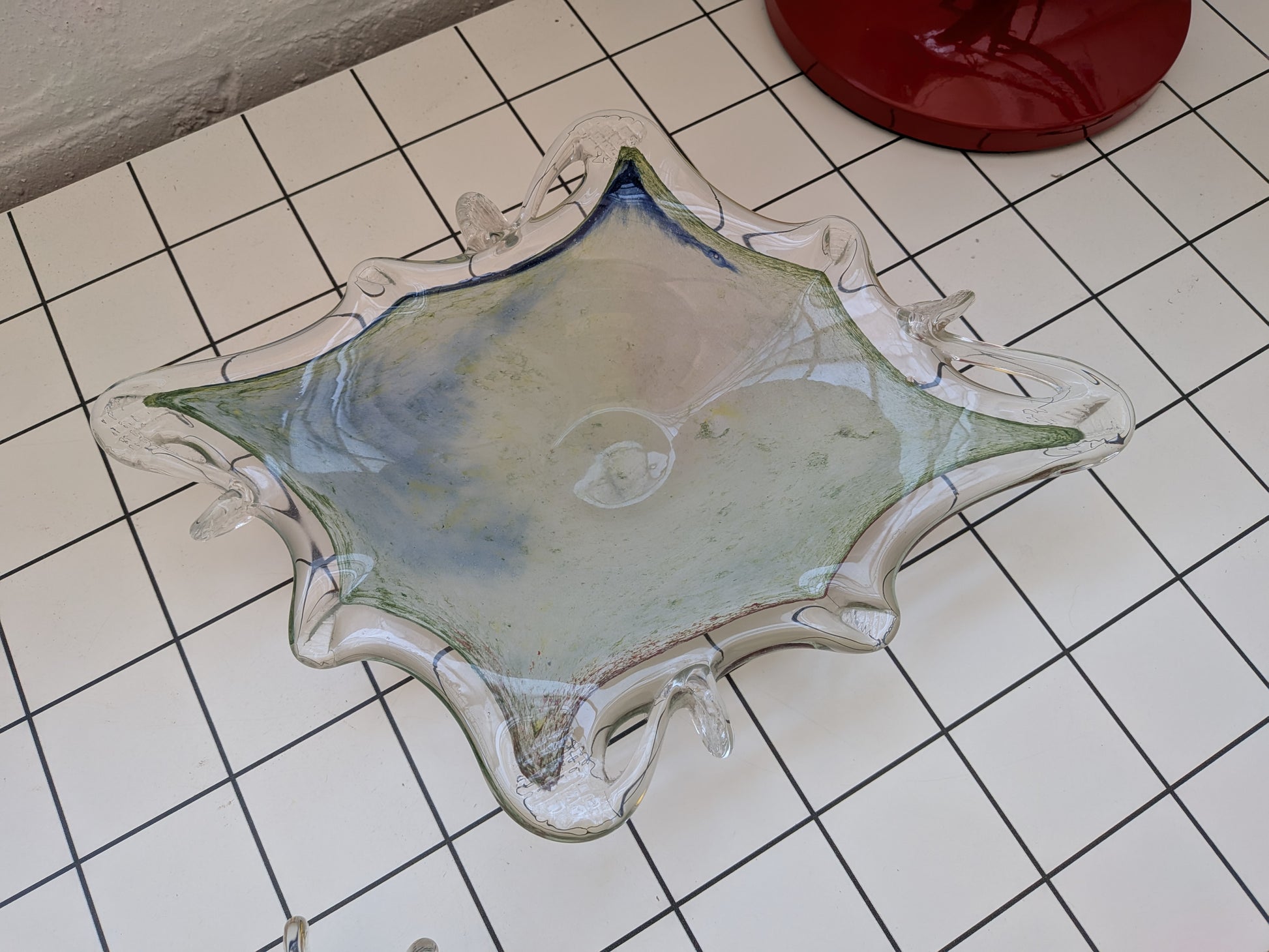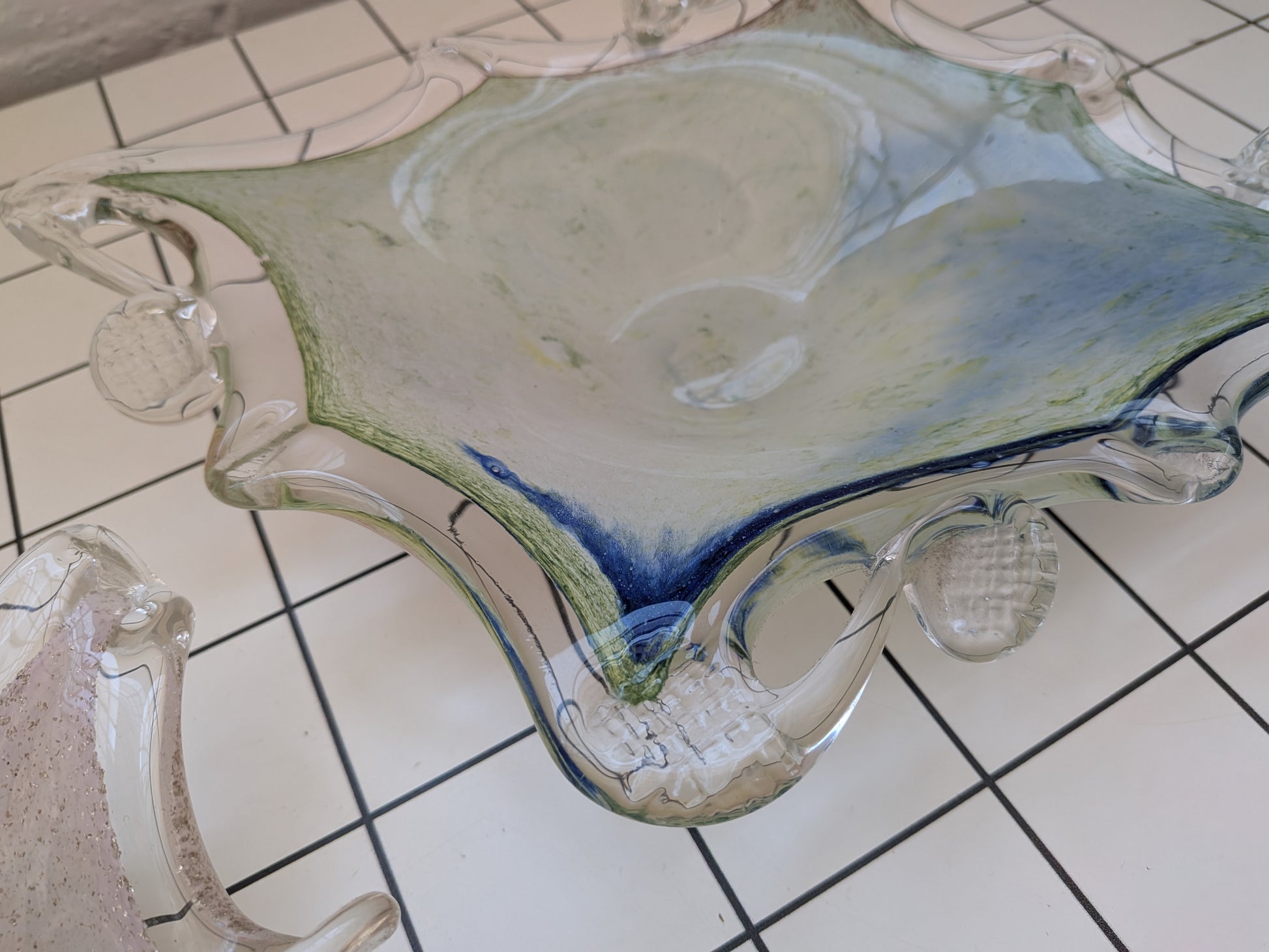 - 2 of the dishes have applied Millefiori style designs and the larger Lavorazione style dish has opaque colours.