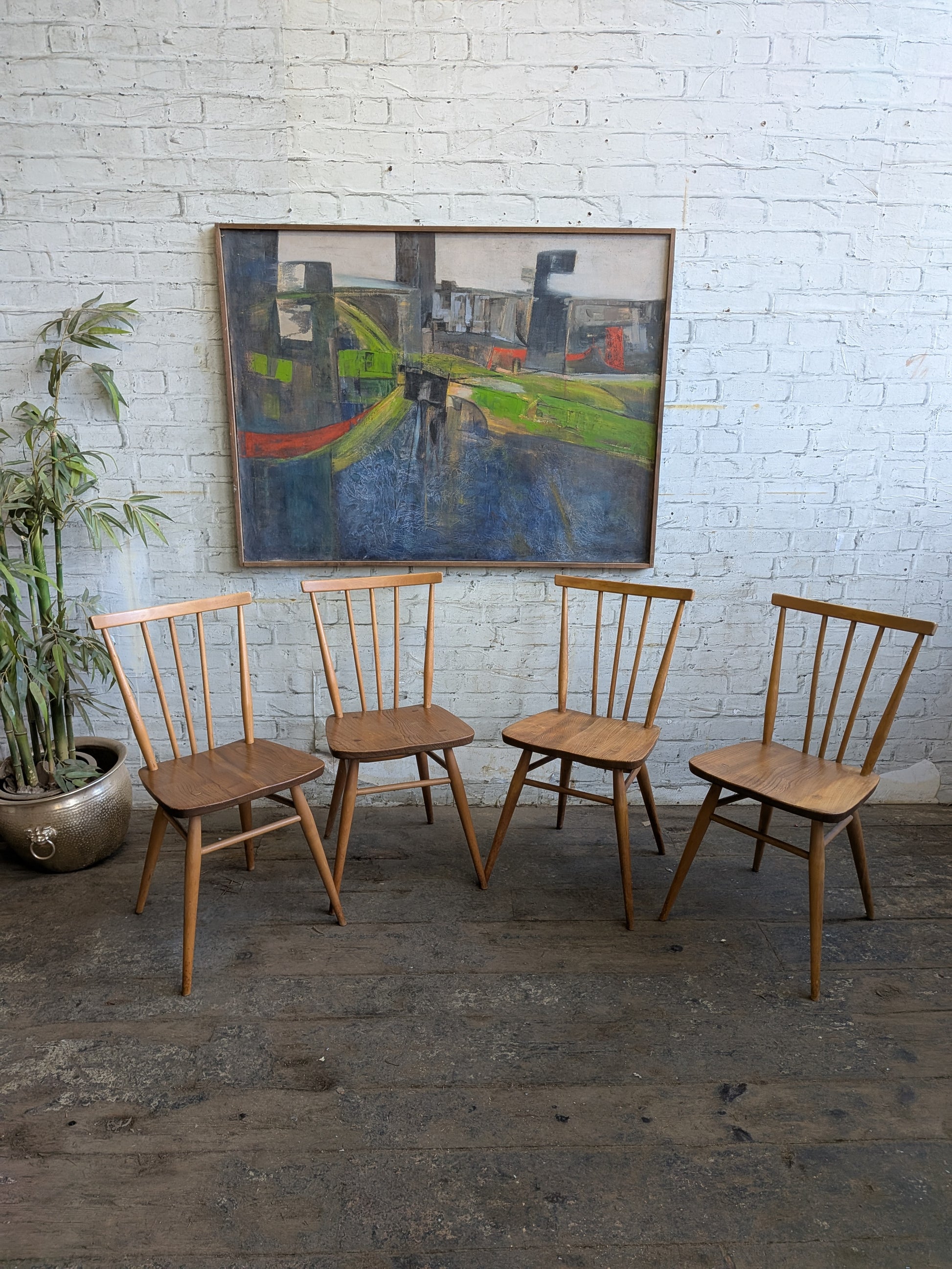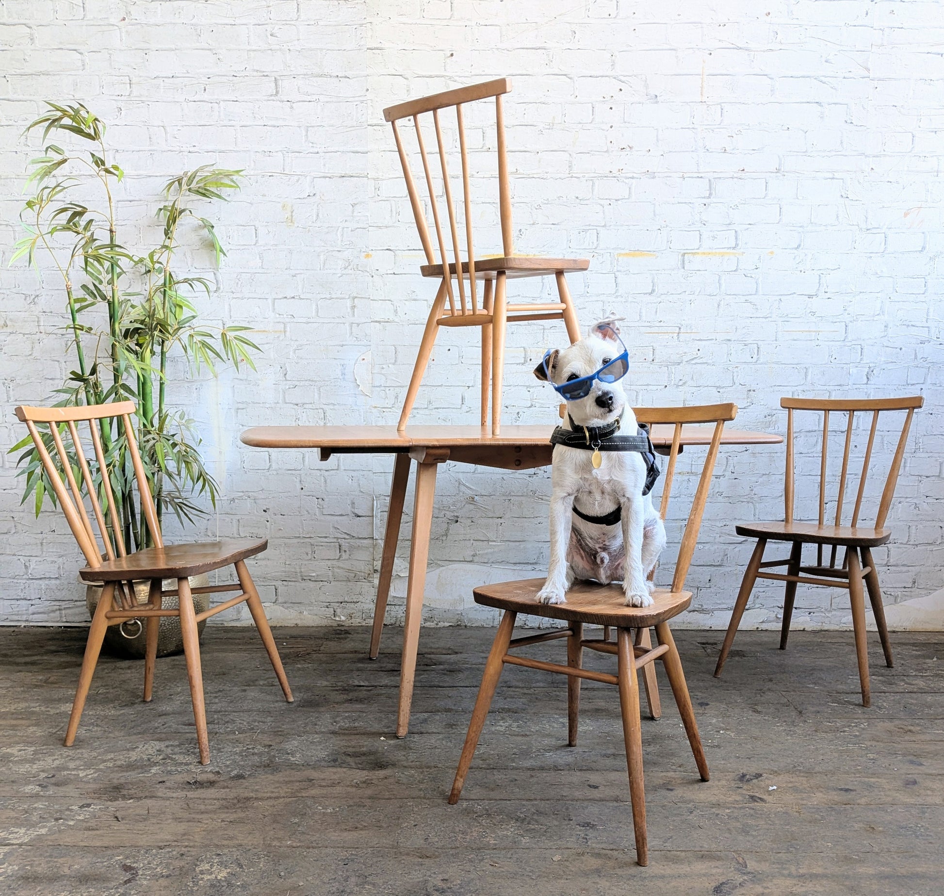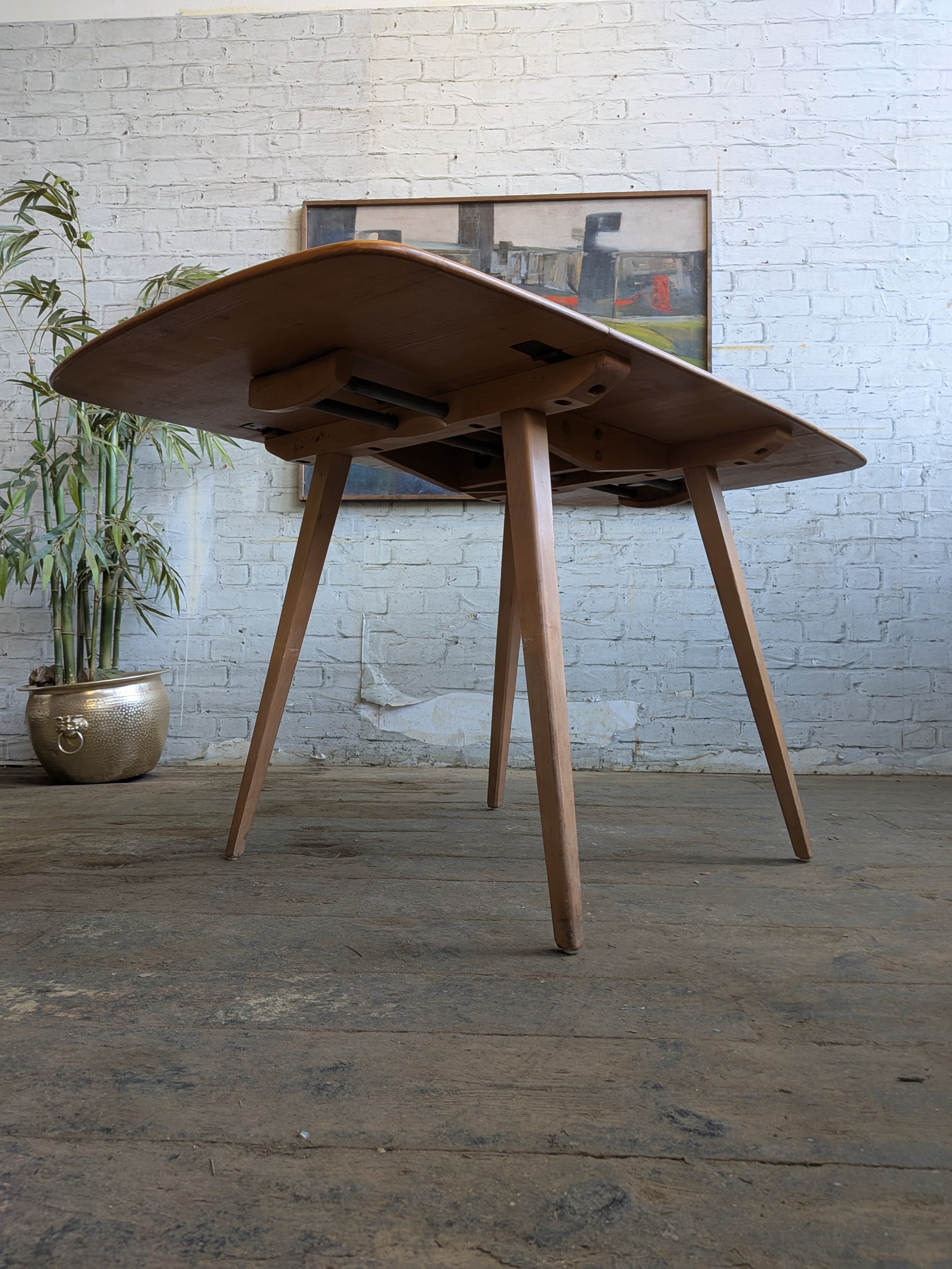 4 Mid Century Modern Ercol All Purpose Chairs and Ercol Drop Leaf Kitchen Bistro Cafe Dining Table