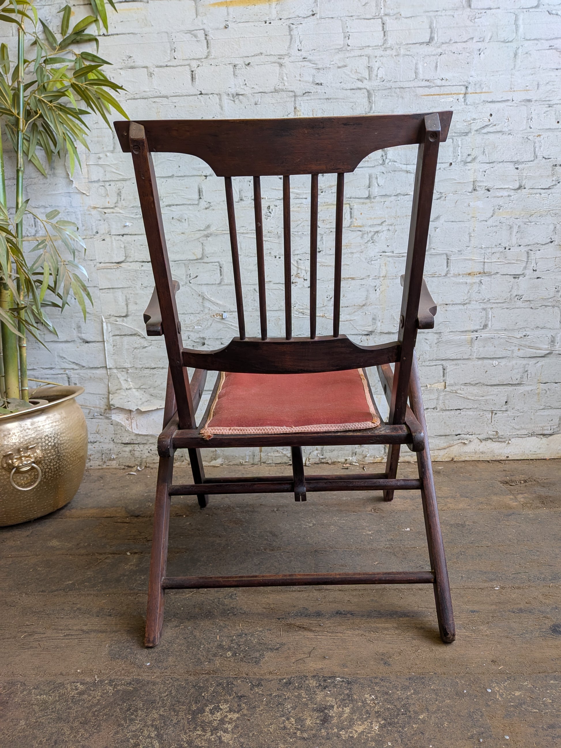 Antique Edwardian Campaign Style Mahogany Folding Chair Hall Bedroom Armchair