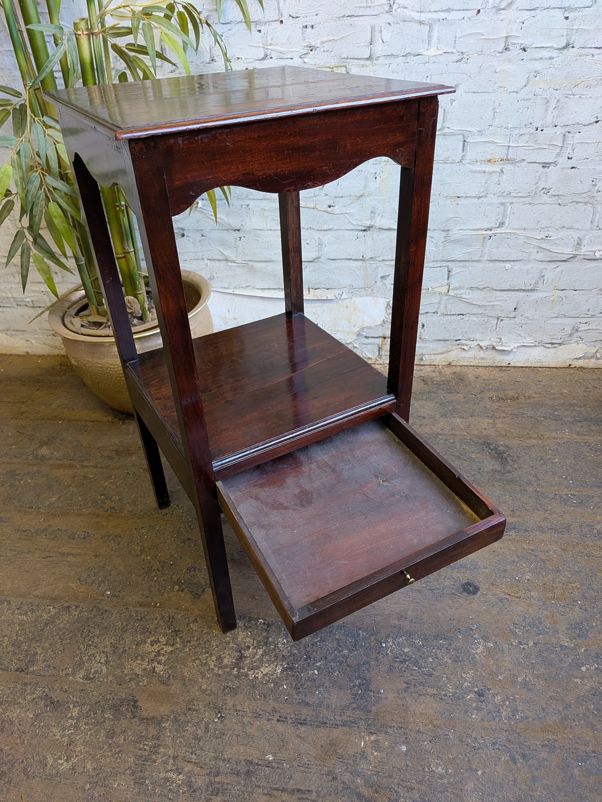 Antique Georgian Mahogany Gents Washstand Bedside Side Plant Table With Drawer