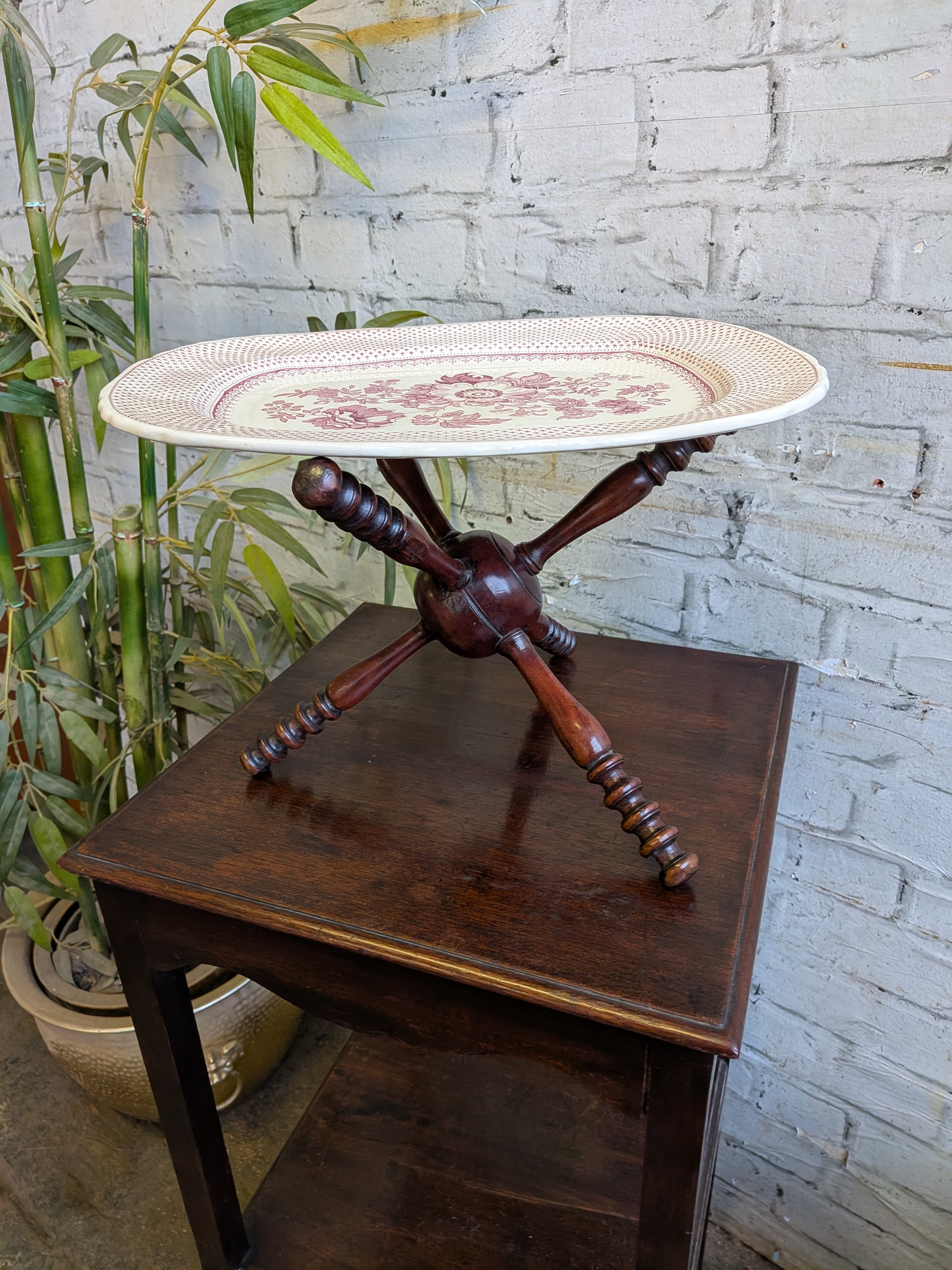 Antique Georgian Treen Turned Mahogany Table Top Plate or Bowl Cat Stand
