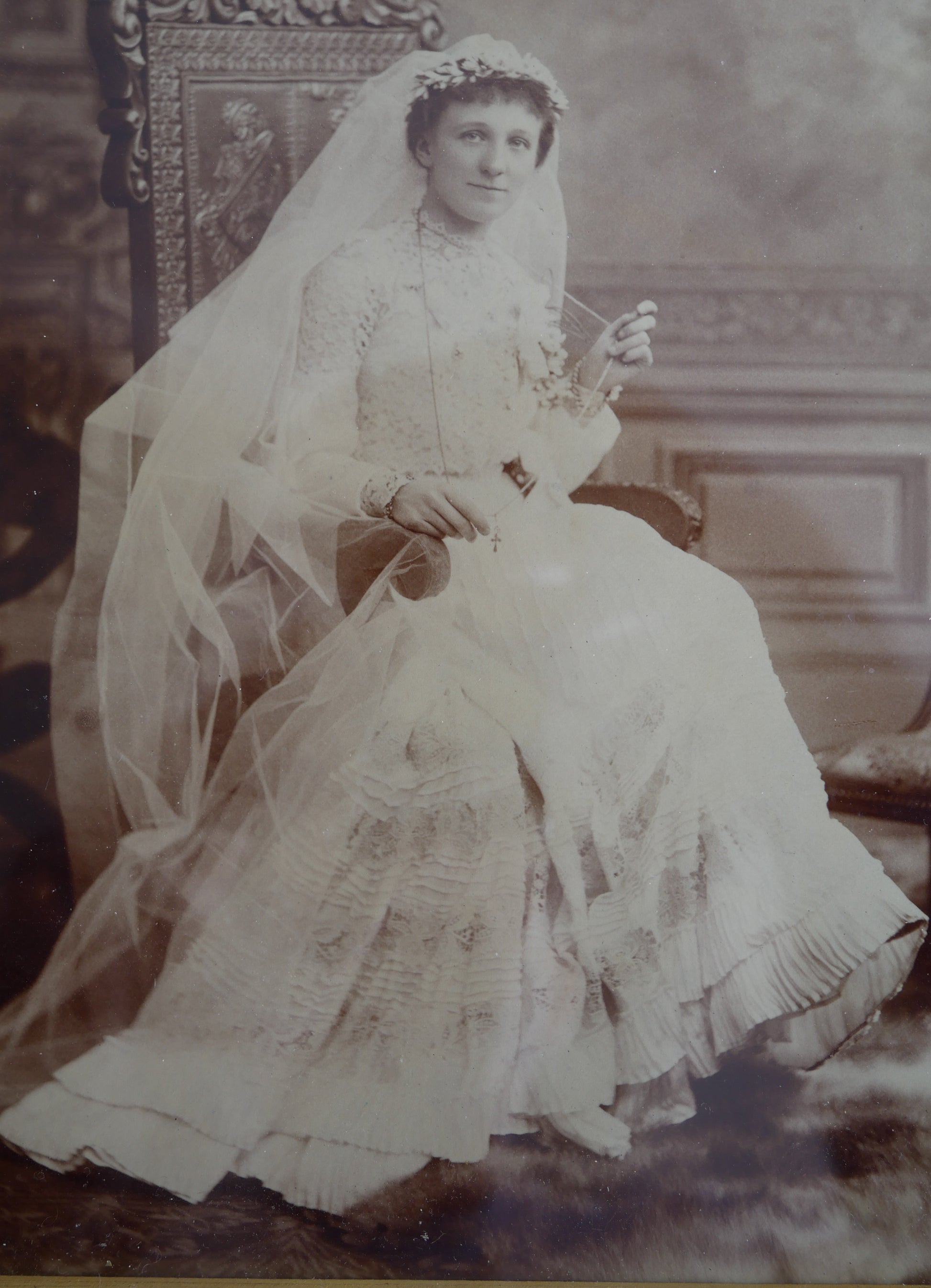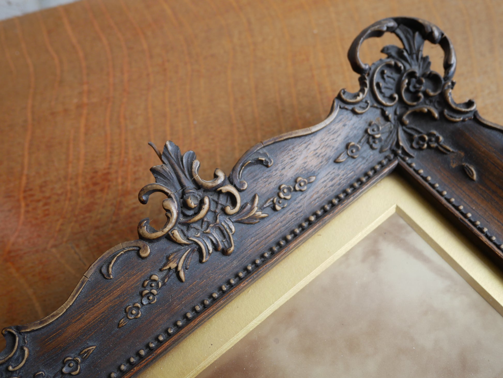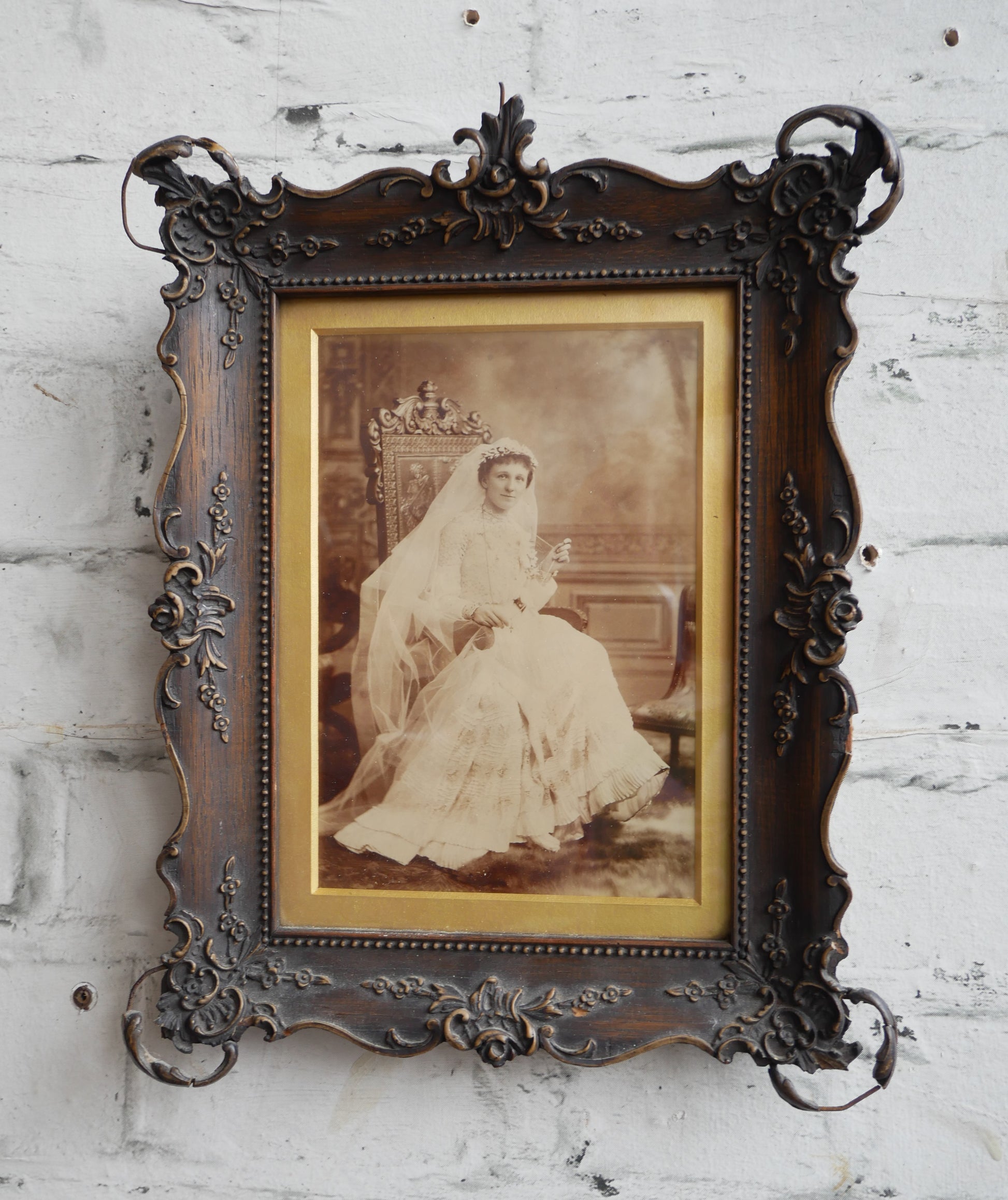 Distressed Antique Edwardian George Barnes Picture Wall Frame with Period Photograpgh of a Bride.