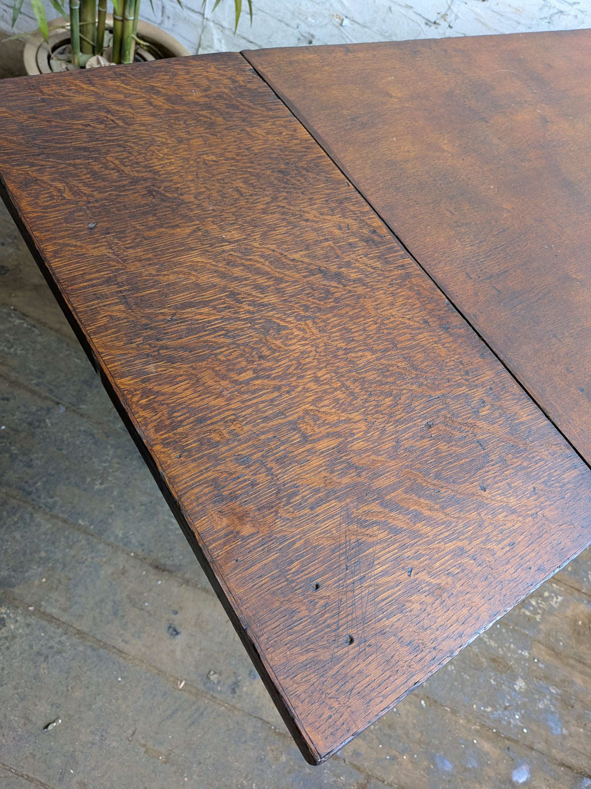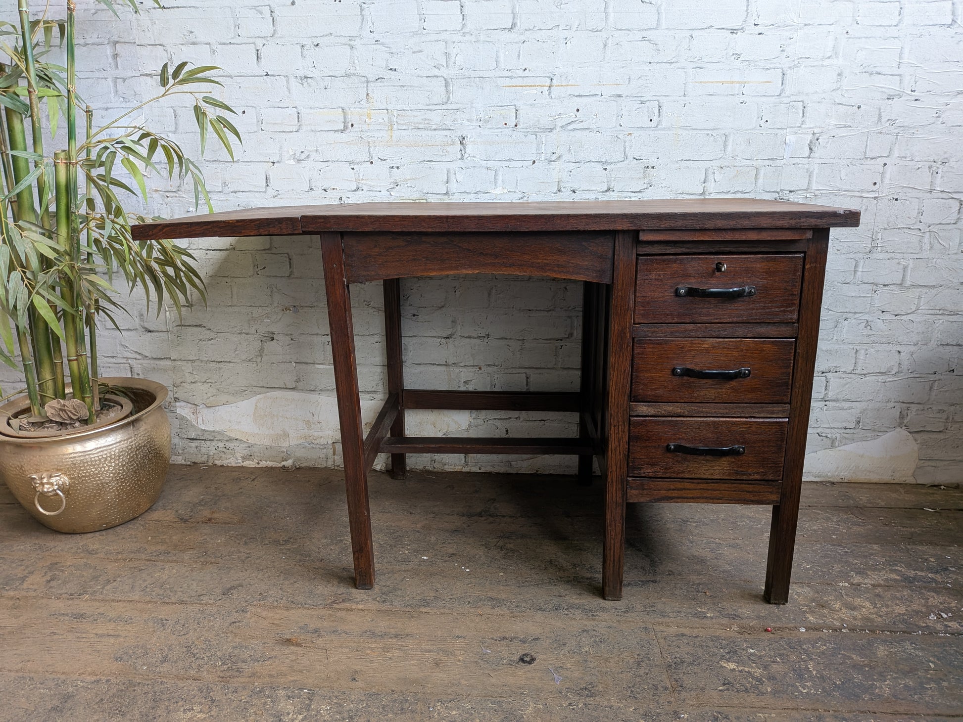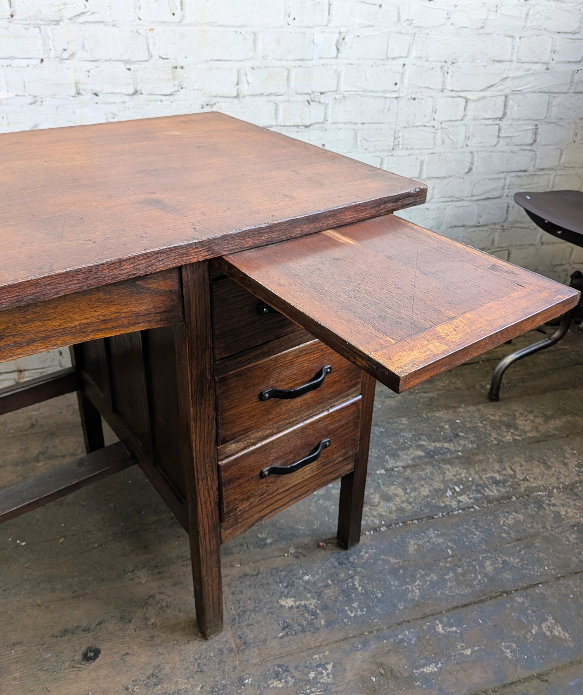 Small Vintage 40s 50s Oak 3 Drawer Extending Industrial Factory Pedestal Desk