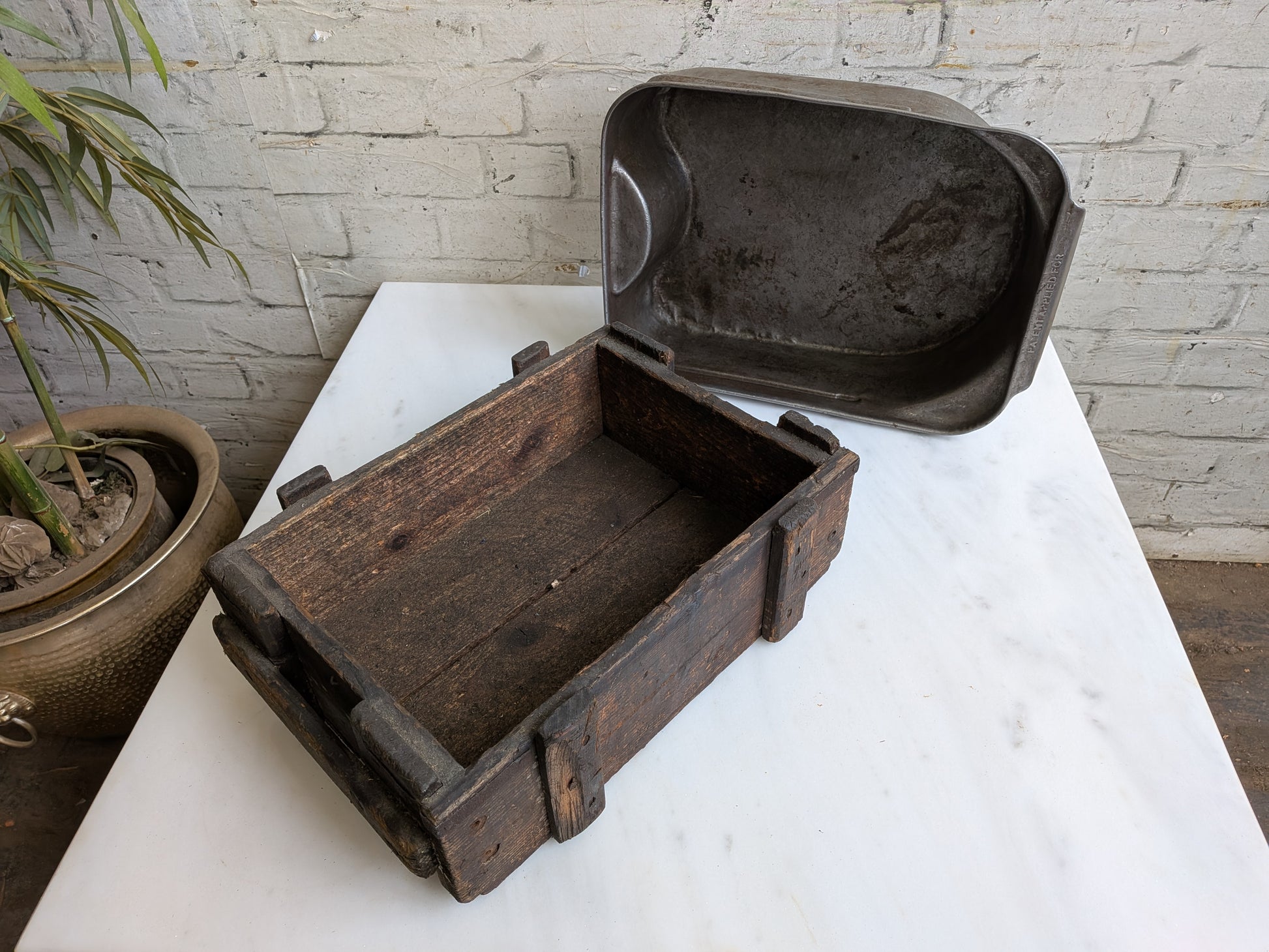 Small Vintage 40s 50s Pine Military Industrial Ammunition Storage Case Crate Box
