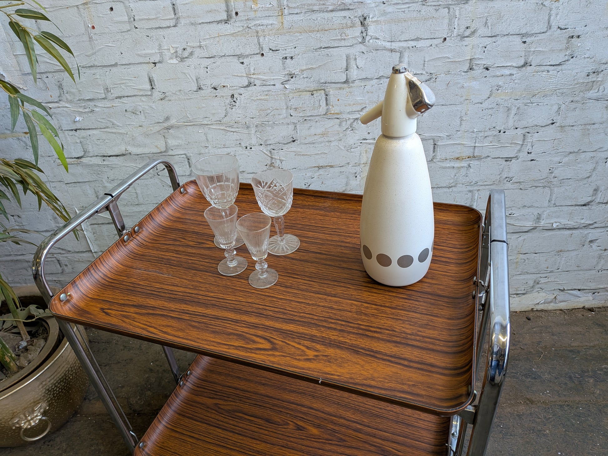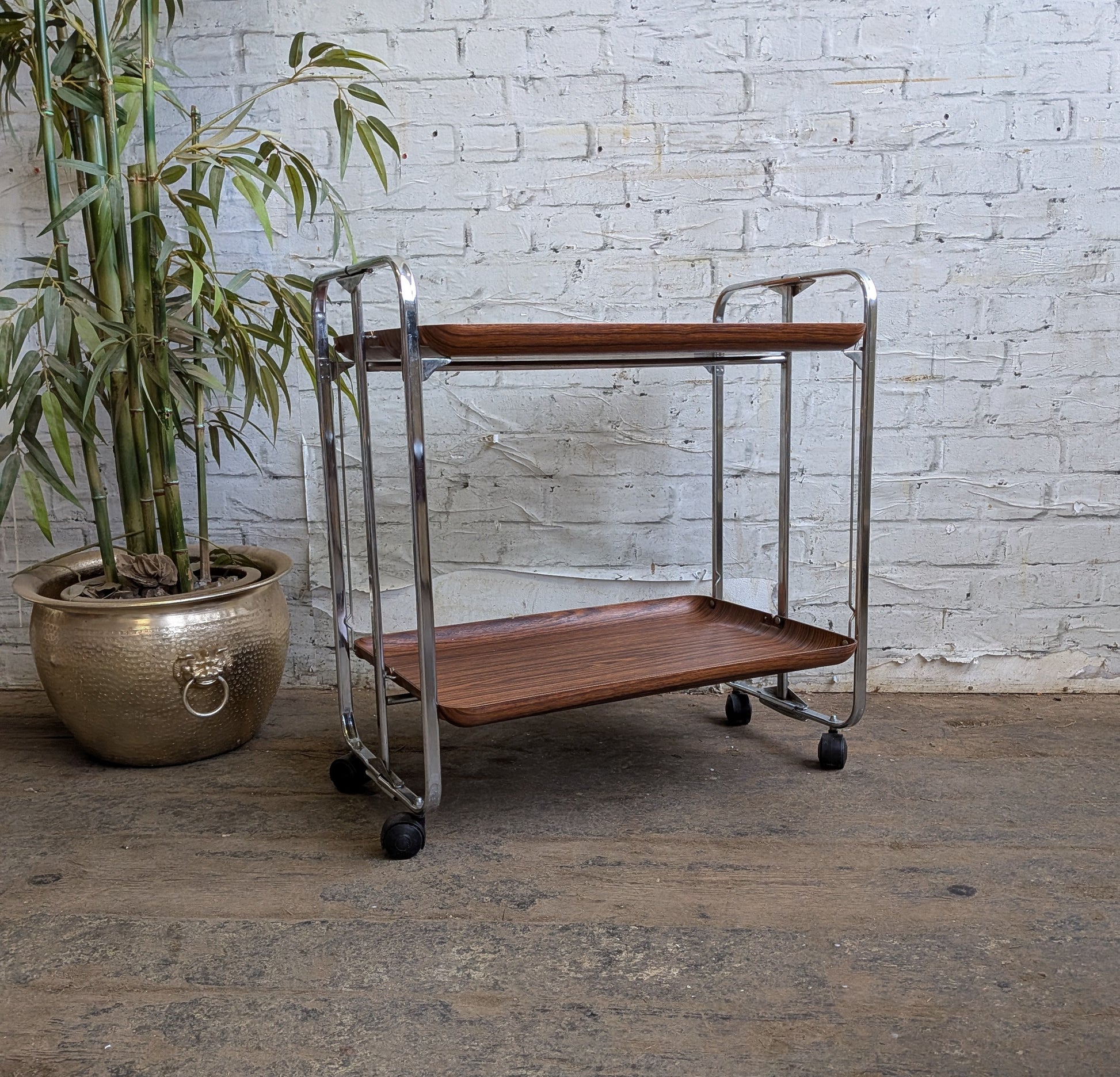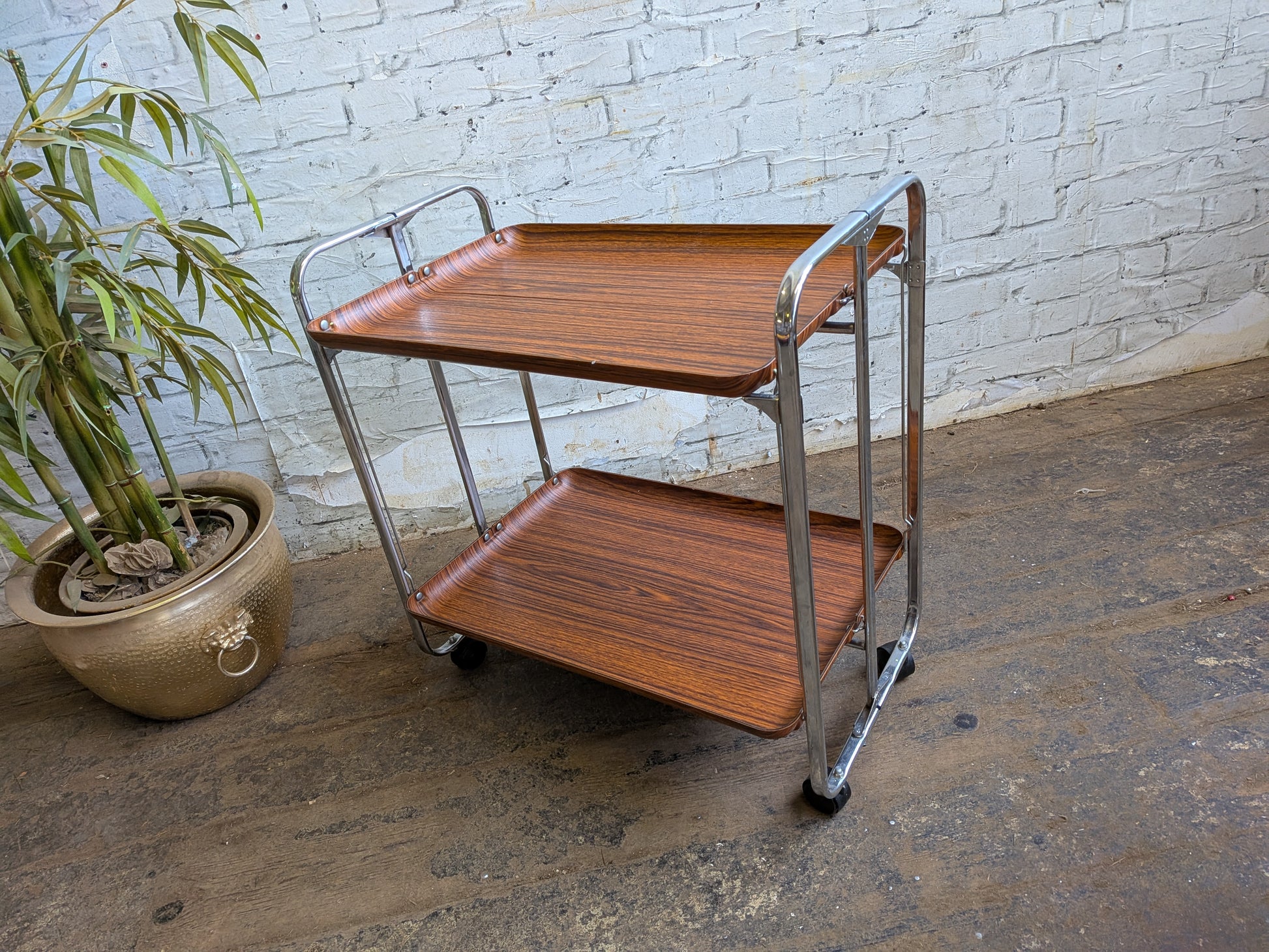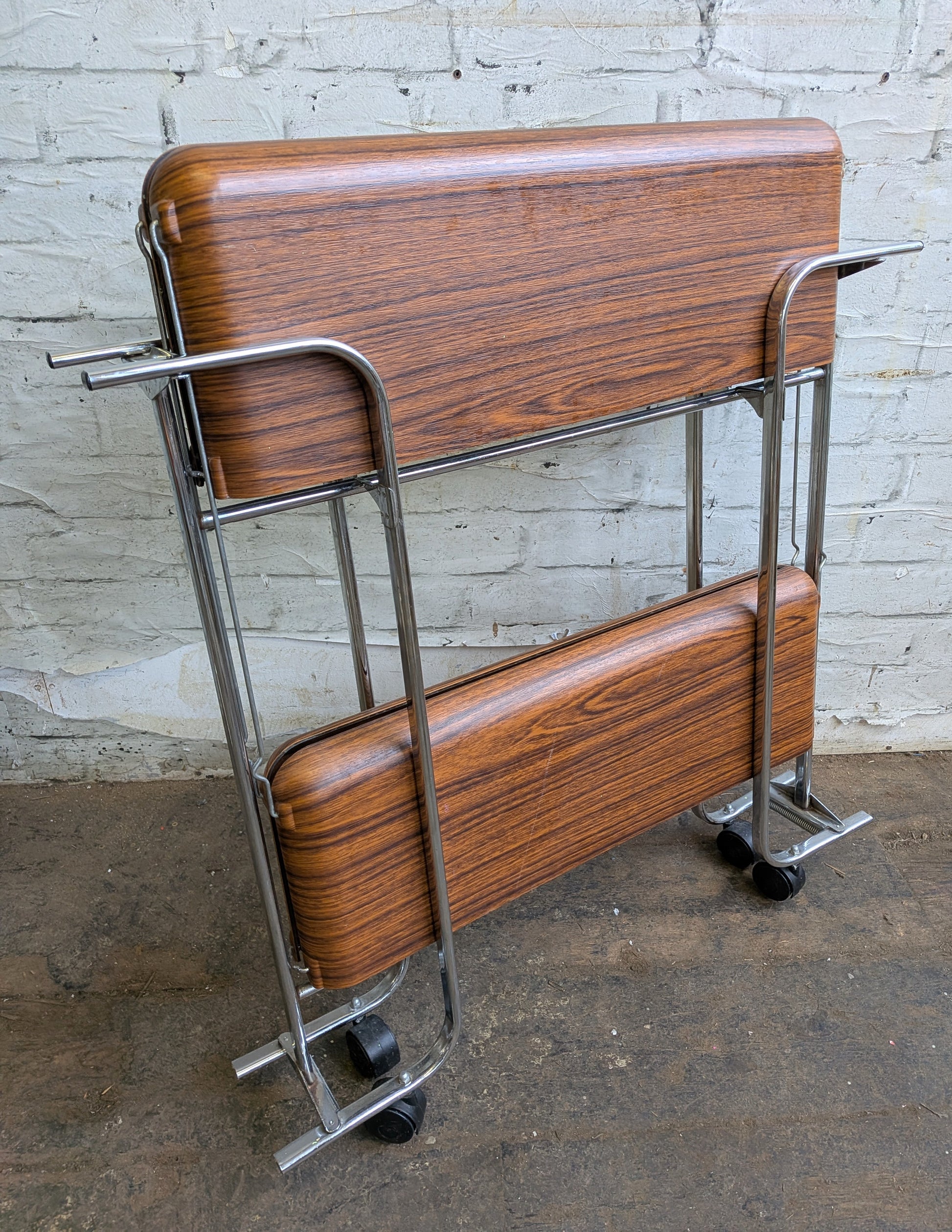Vintage Retro 1970s Mid Century Modern Formica & Chrome Folding Cocktail Bar Drinks Books Table Trolley.