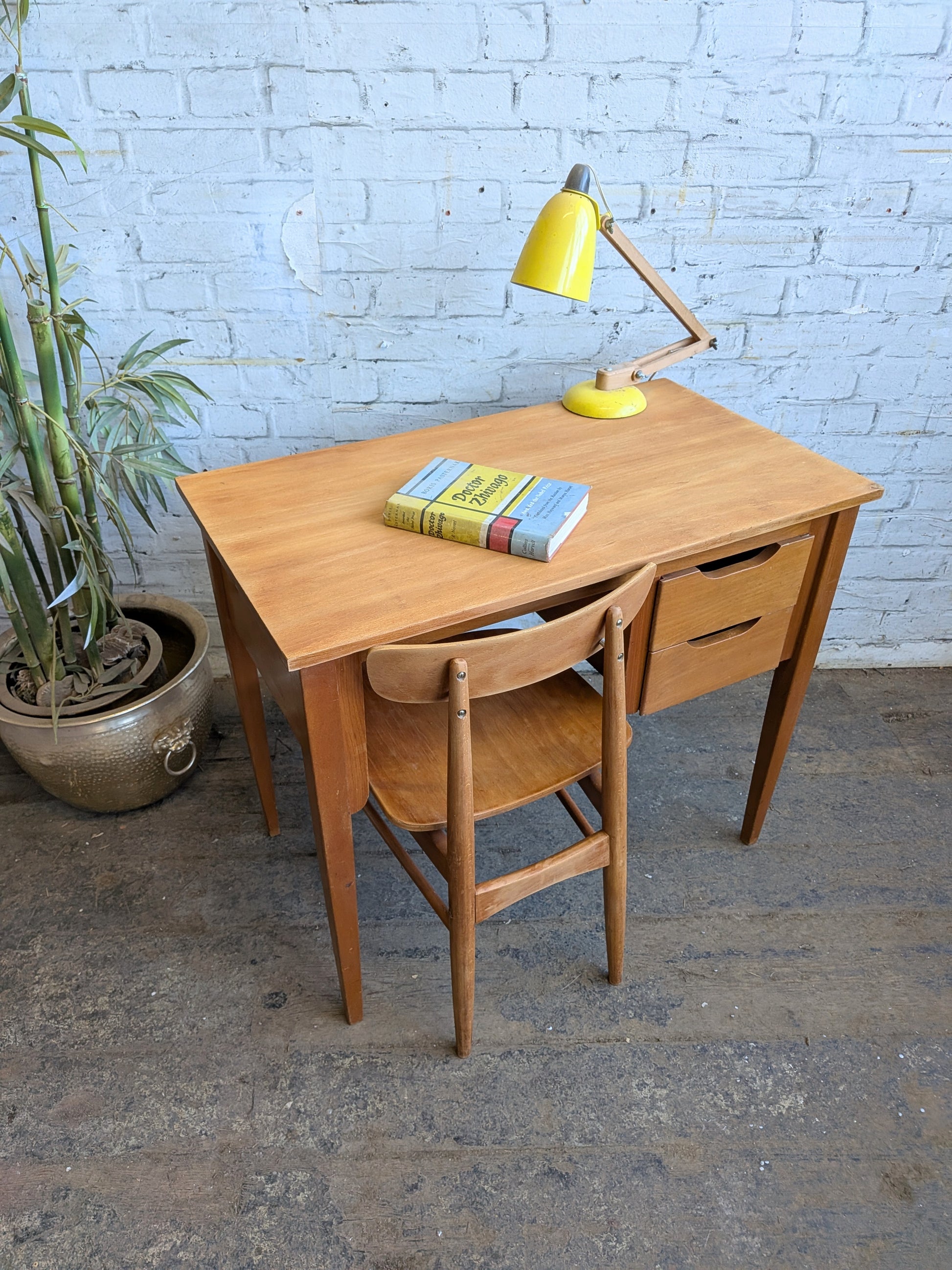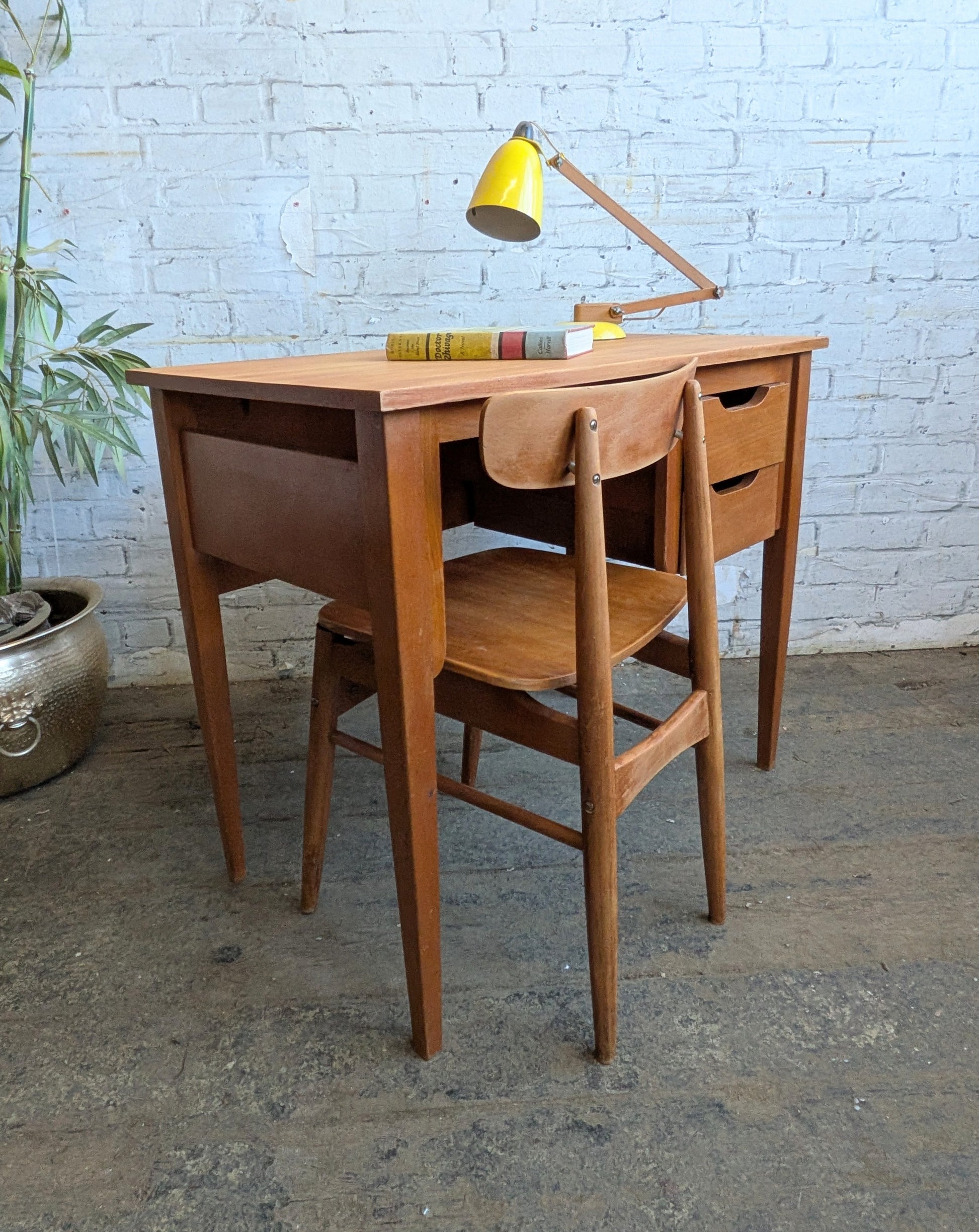 Small Vintage 1960s Mid Century Modern 2 Drawer Desk with Matching Chair
