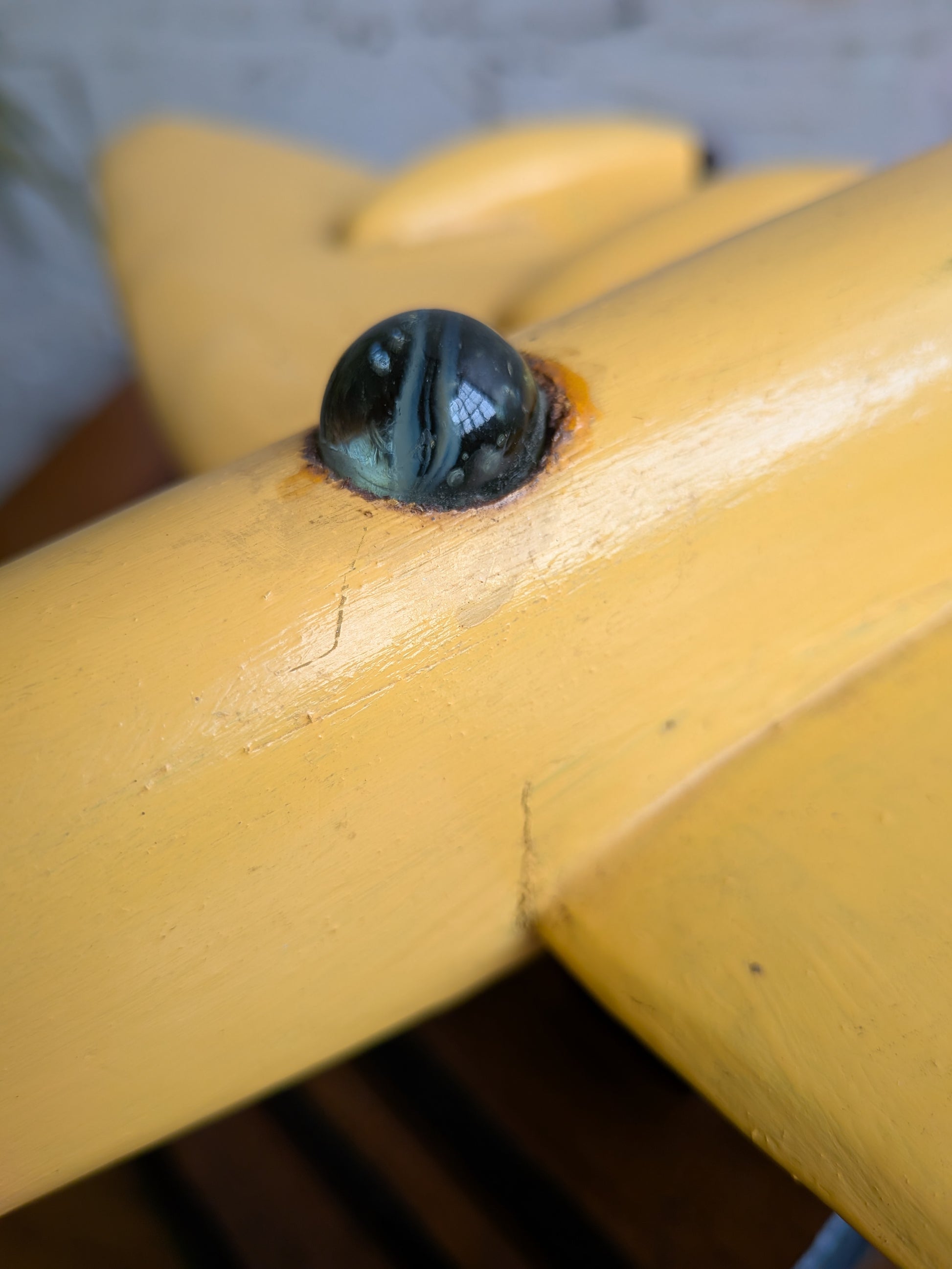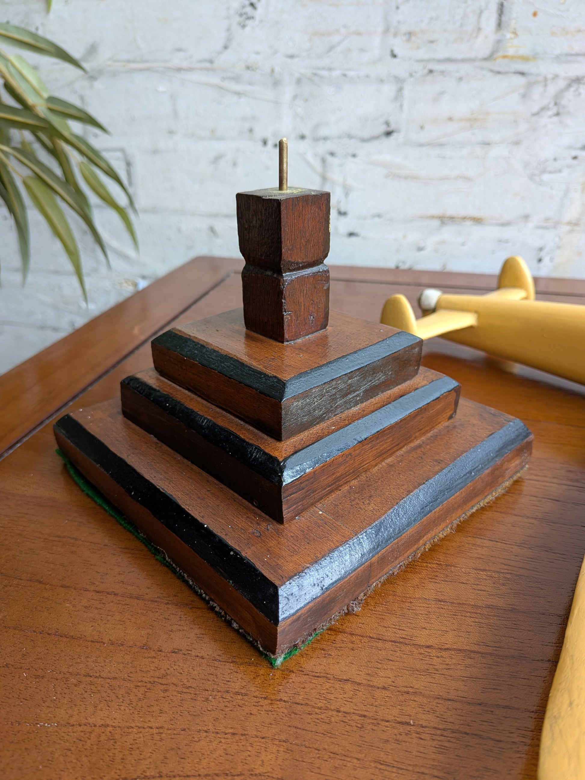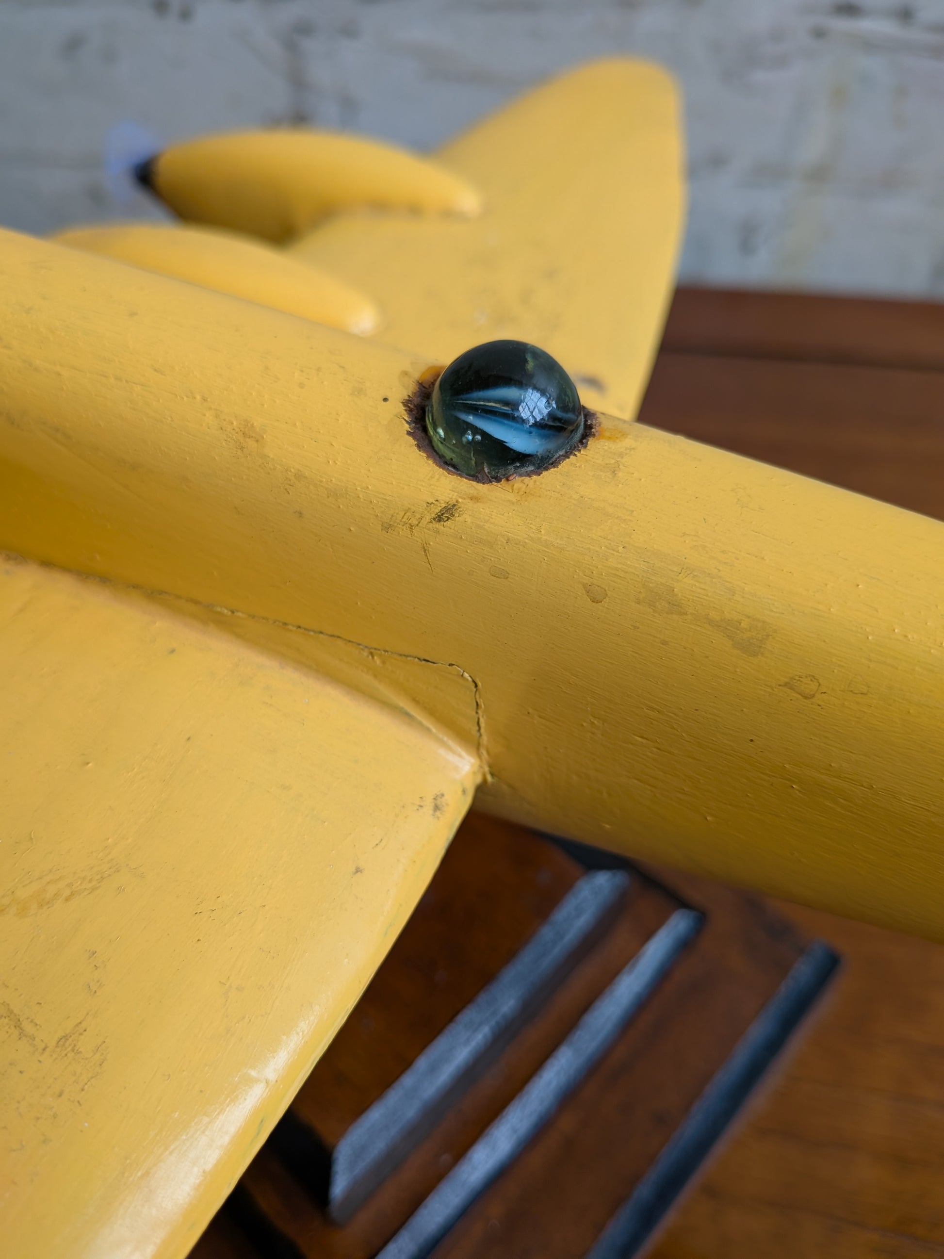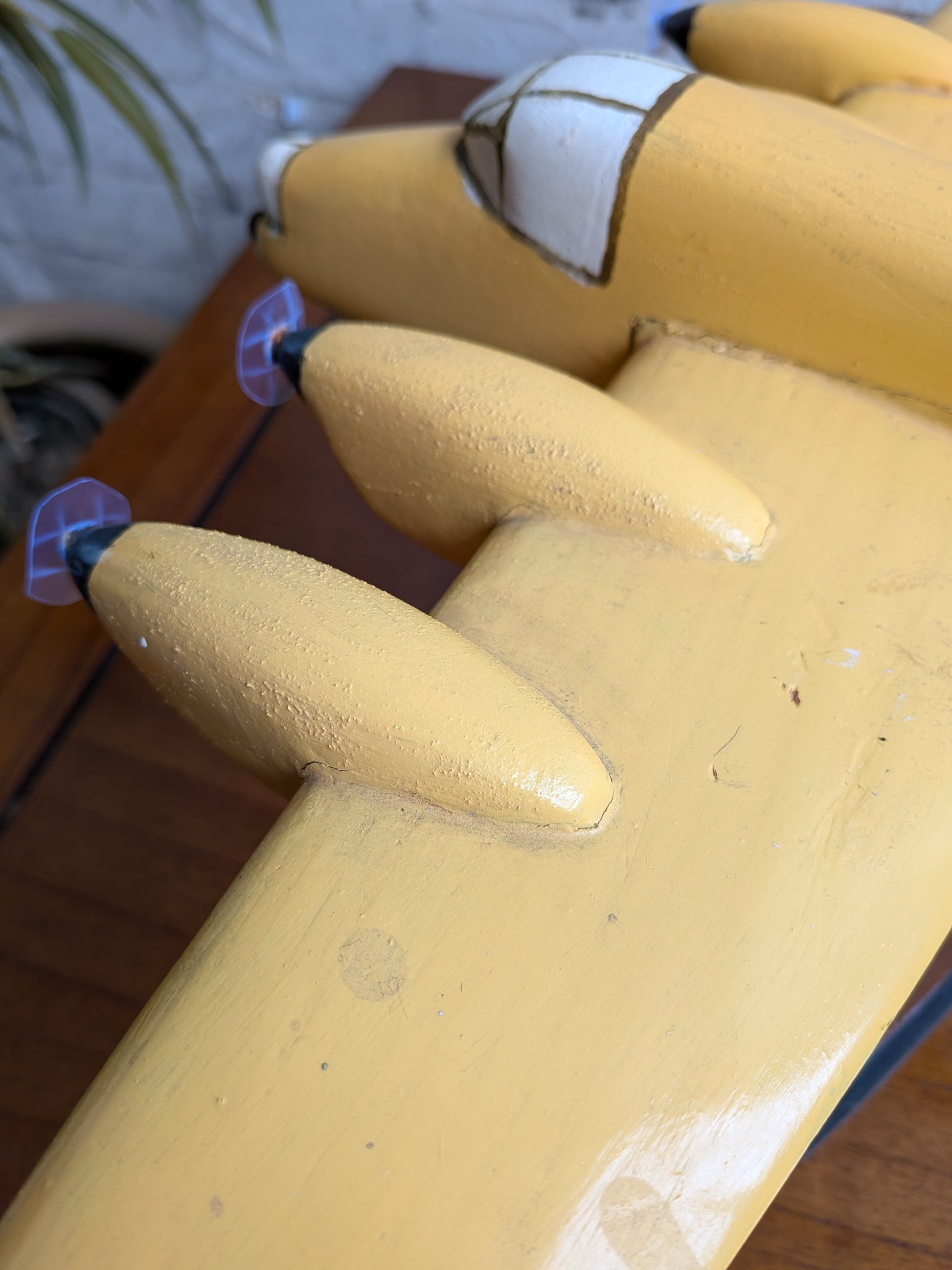 Vintage 50s 60s Folk Art Hand Painted Wooden Lancaster Bomber Toy Model on Art Deco Base