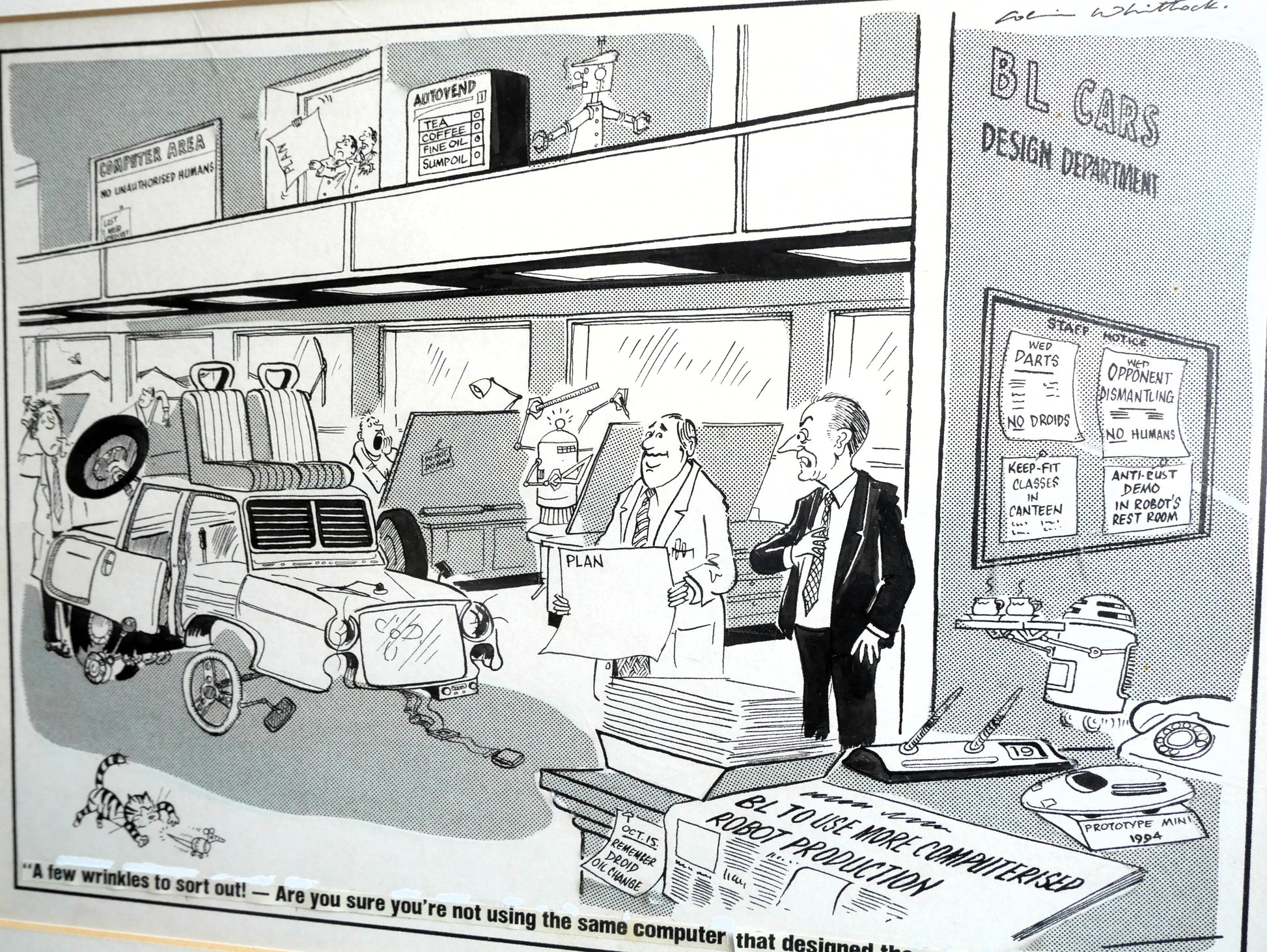 Vintage 1970s 80s Colin Whittock Birmingham Evening Mail British Leyland Cars Template Cartoon