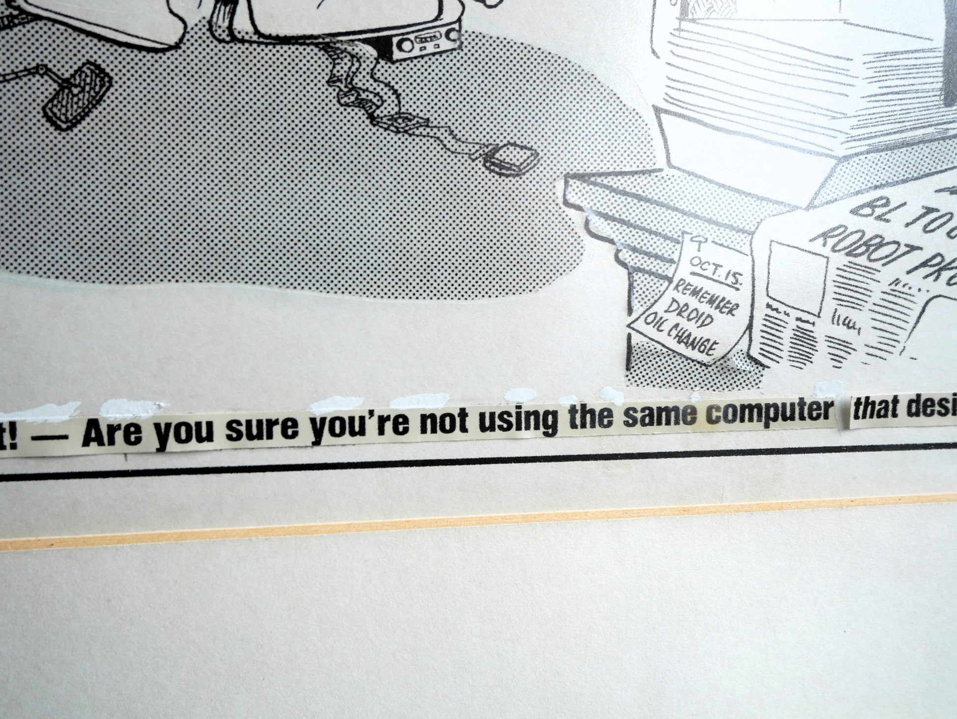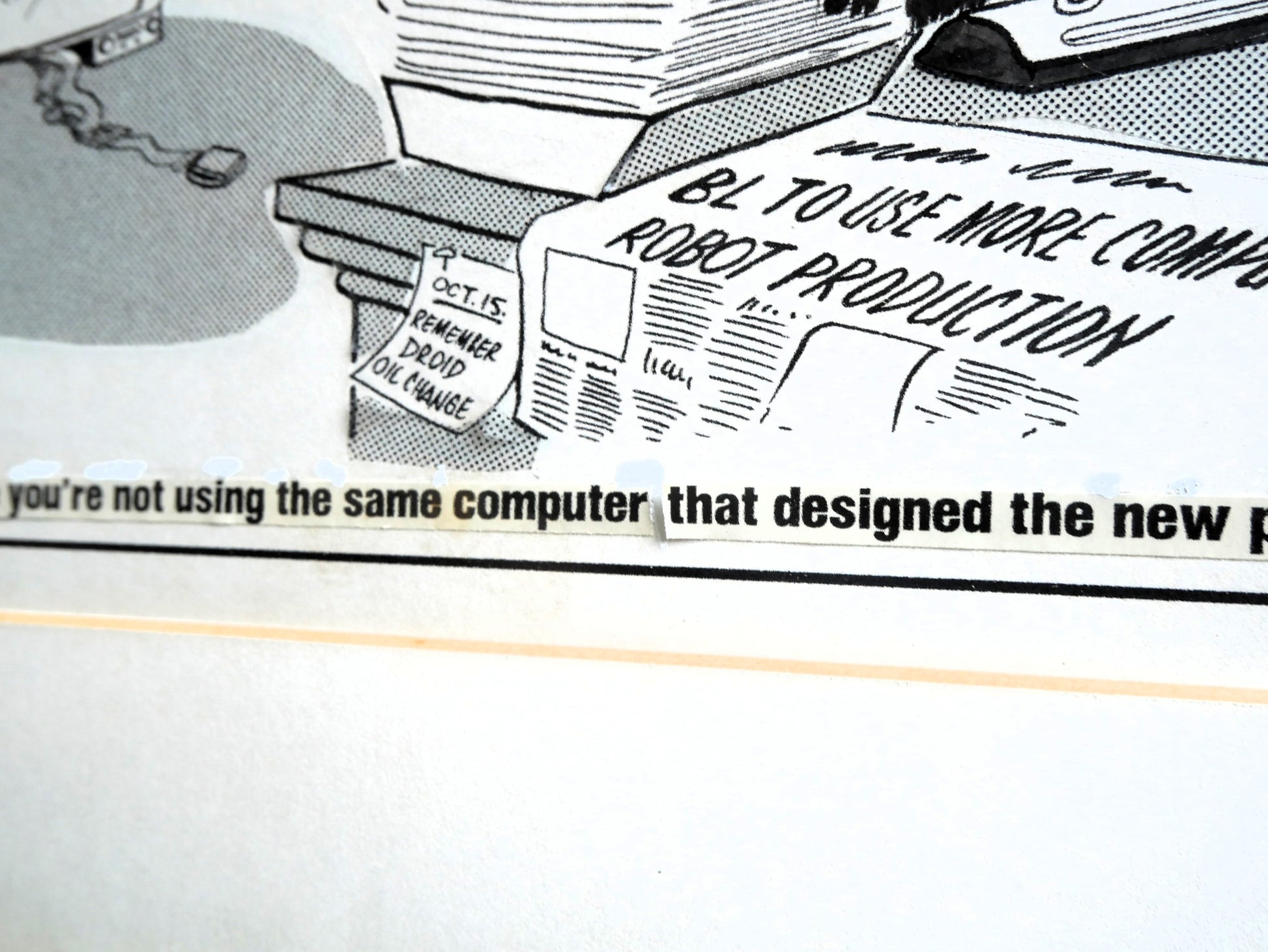 - The cartoon appears to be a template or prelimary cartoon possibly before going into print as the main captions have been glued in separately and the darker/ shadowy areas have also been applied separately.