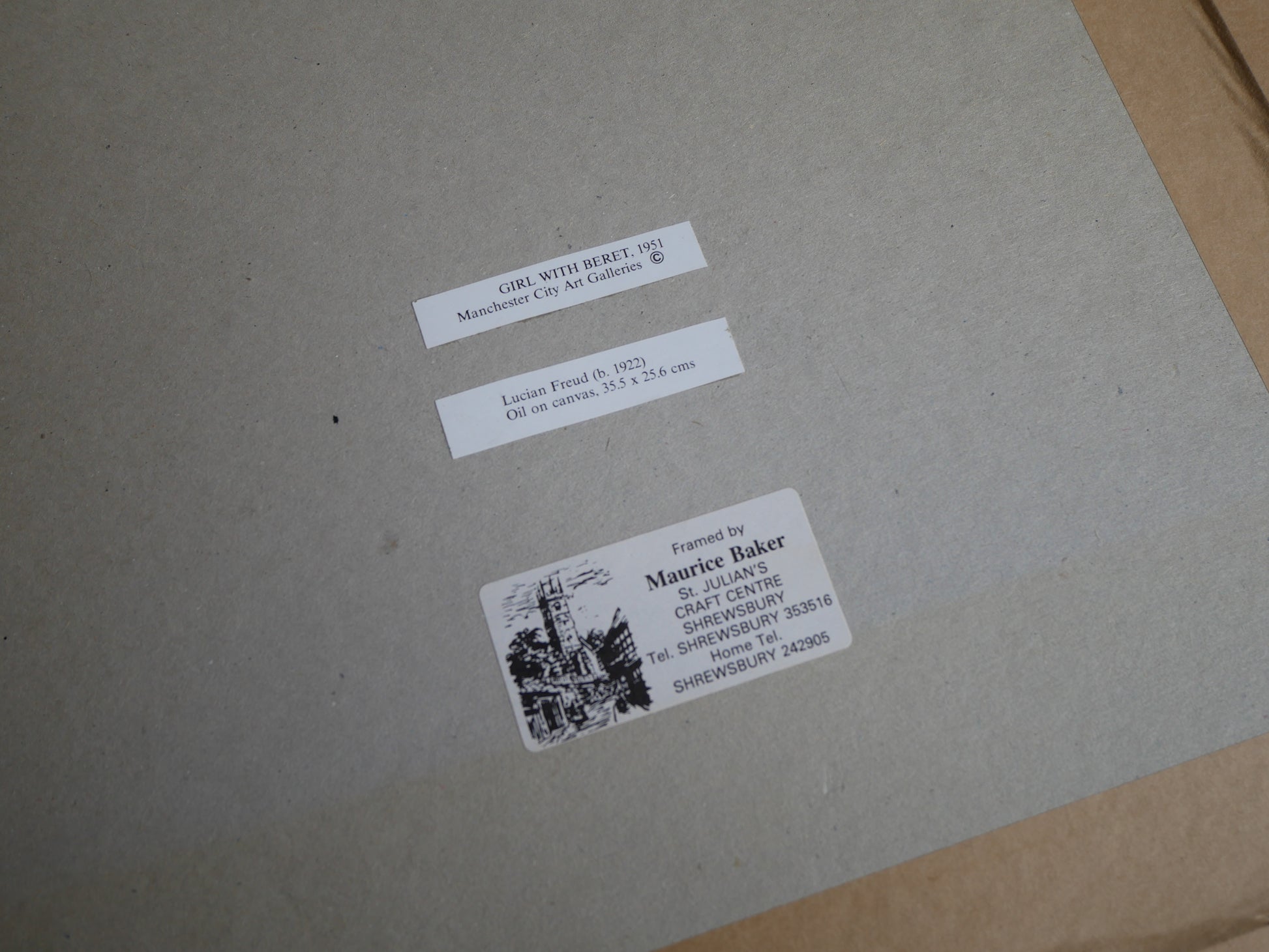 Vintage Framed Lucien Freud Print of a Girl with Beret