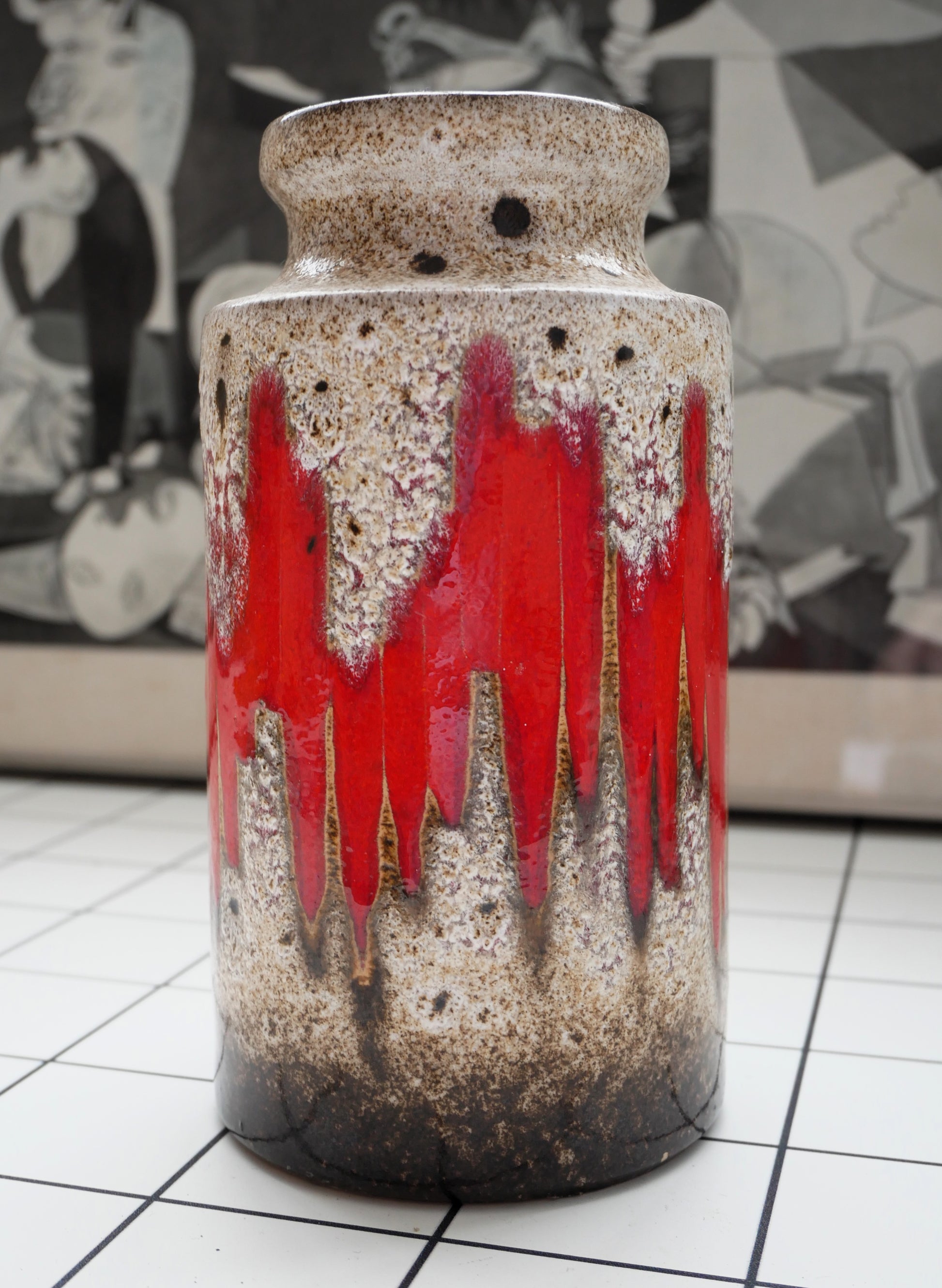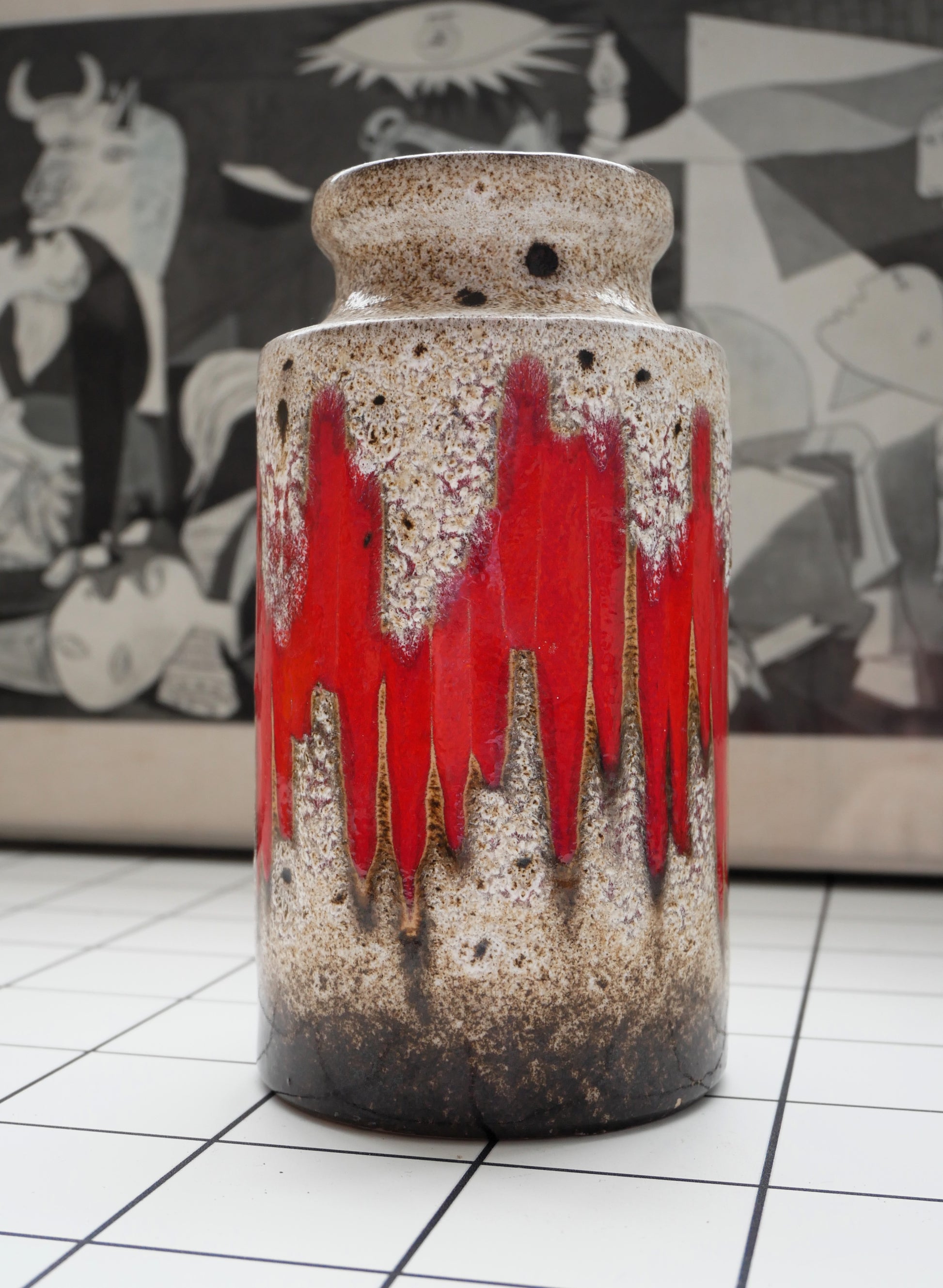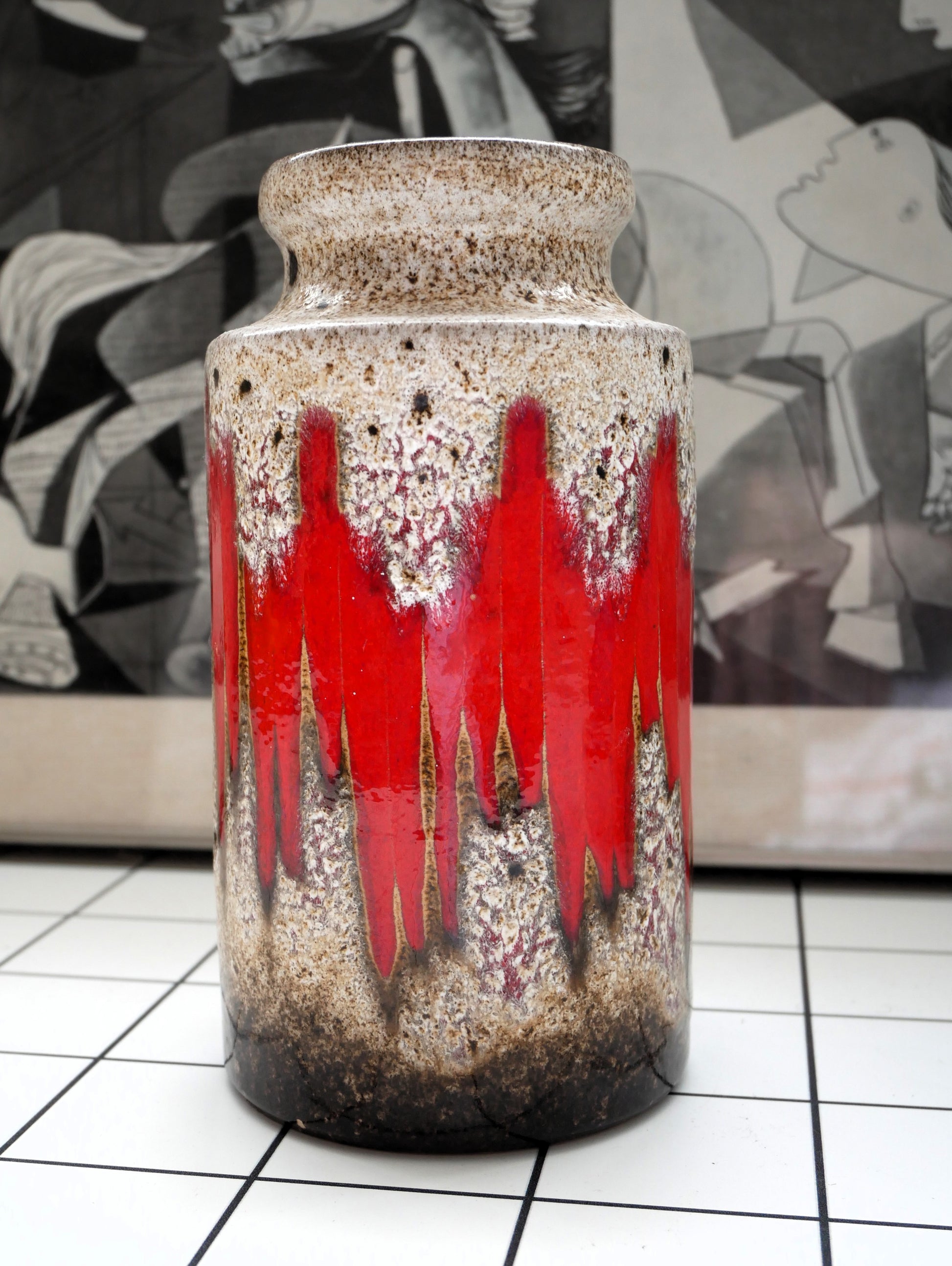 - A vibrant mid century modern lava pottery vase possibly by Scheurich.