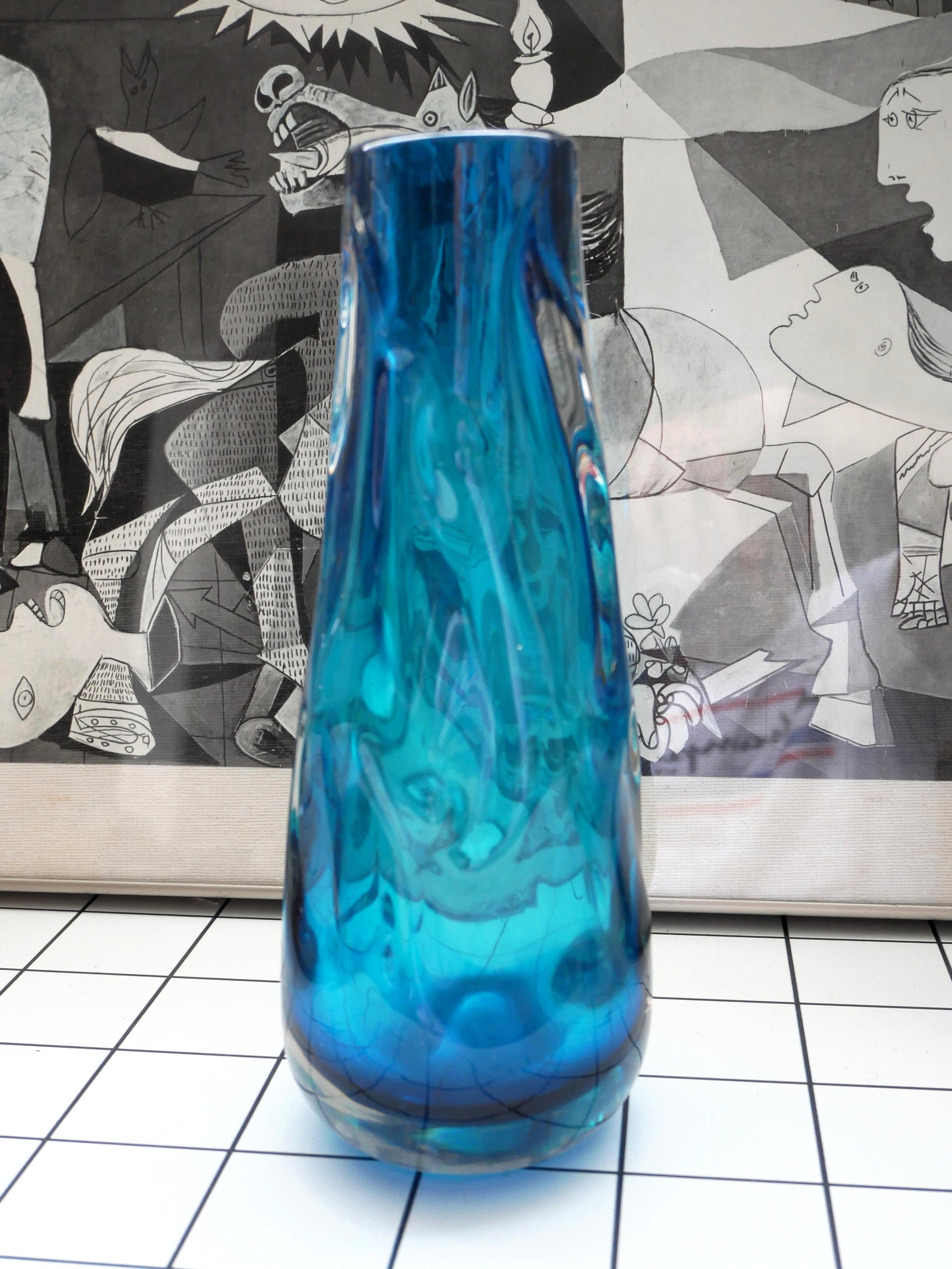 Vintage Mid Century Modern Whitefriars Kingfisher Blue Knobbly Glass Vase