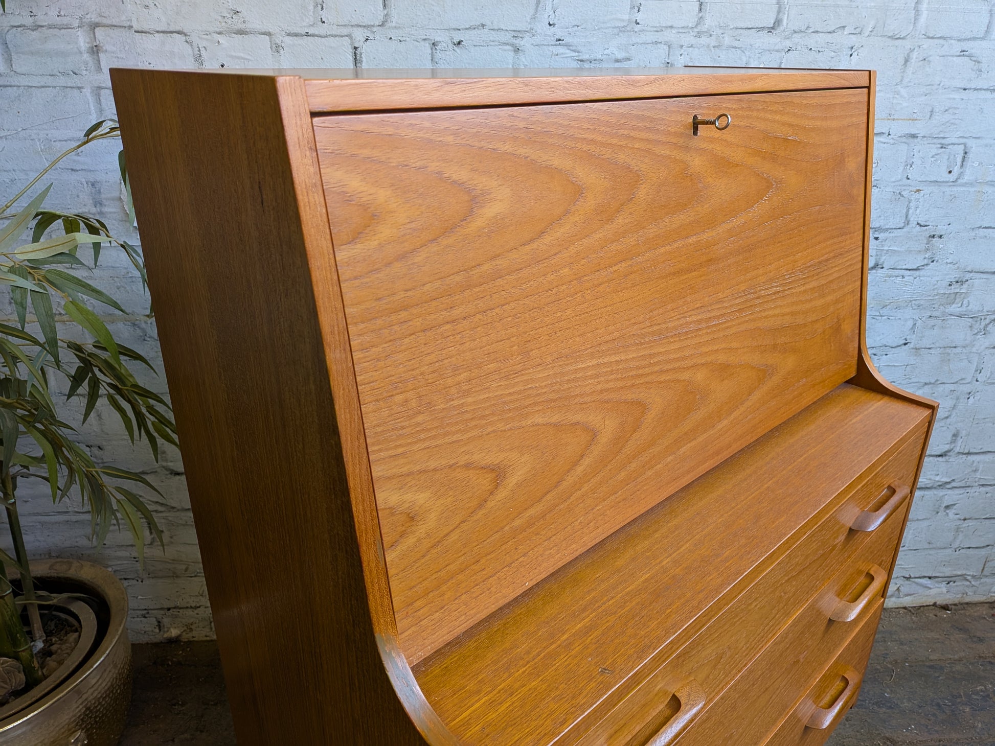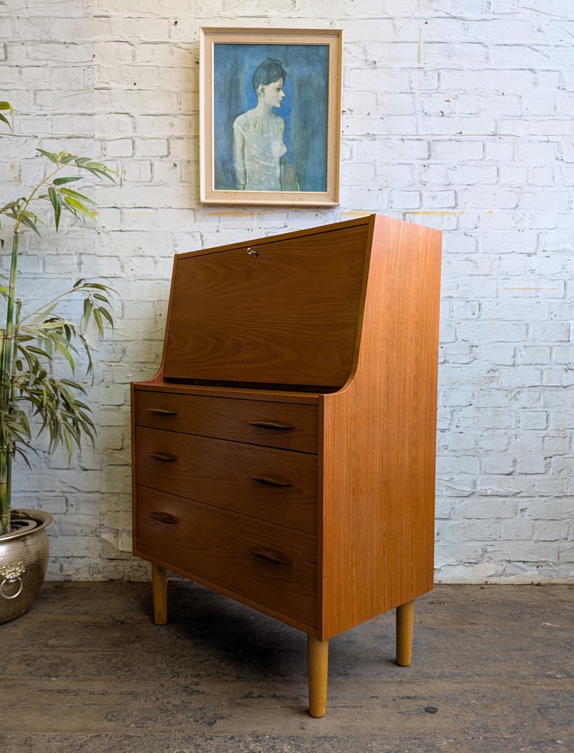 Vintage Retro 1960s 70s Mid Century Modern Teak 3 Drawer Writing Desk Bureau