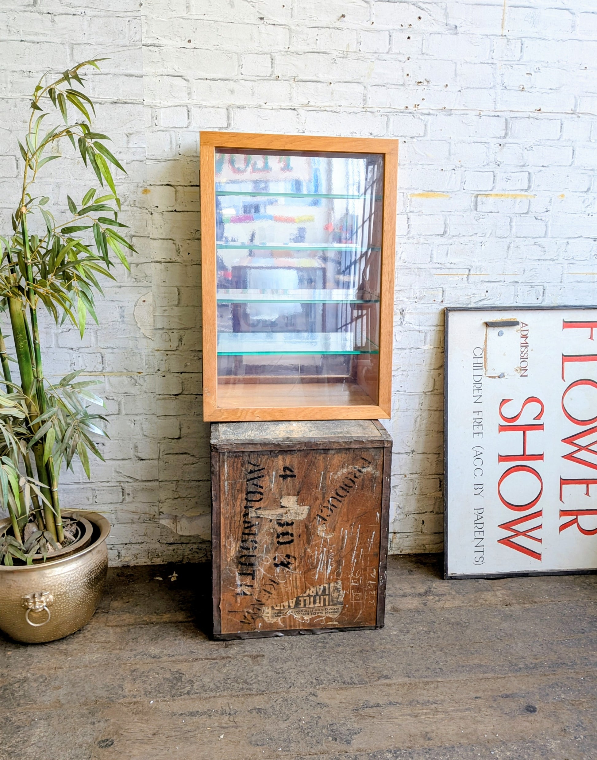 - 1 vintage wedge shaped table top display unit.