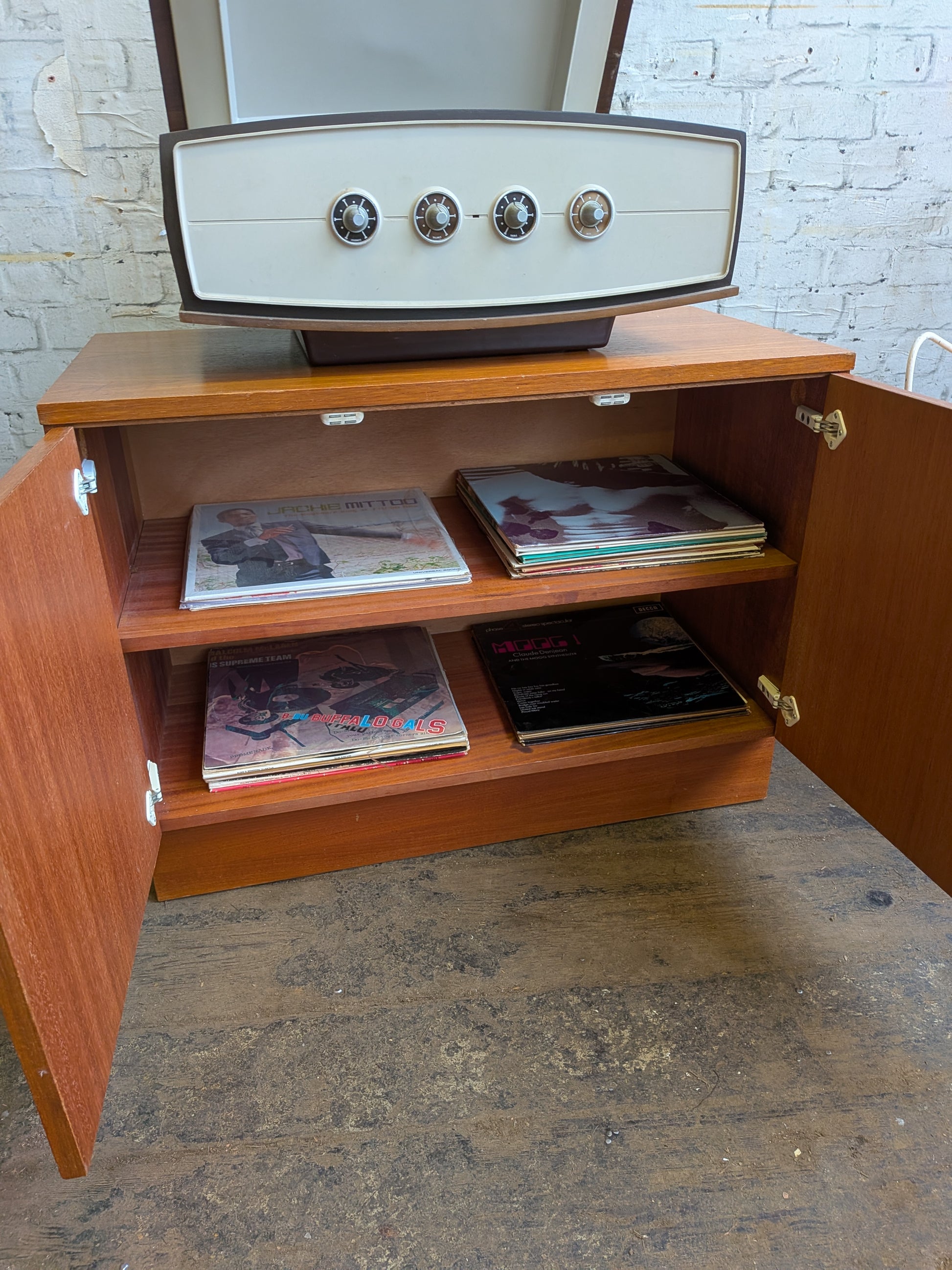 Vtg 60s 70s Retro Mid Century Modern Record Storage Media TV Cabinet Sideboard
