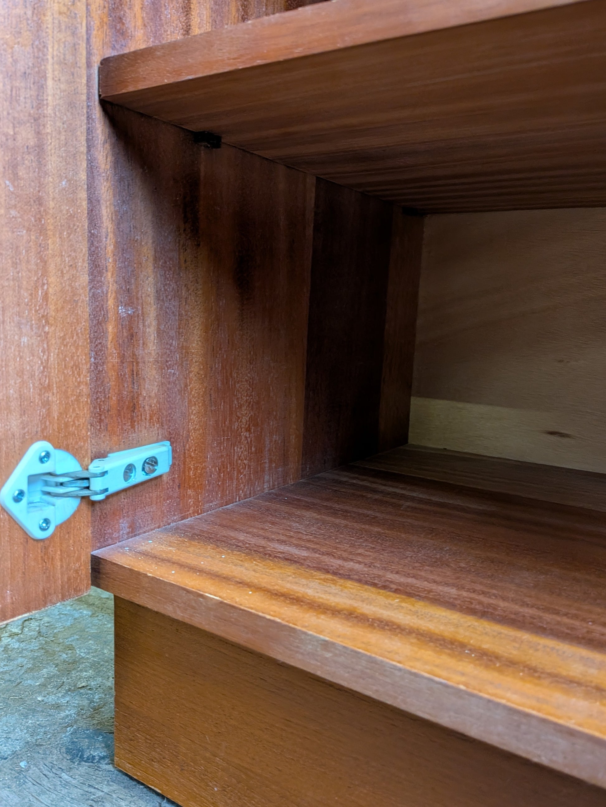 - Internal storage with a single shelf. The shelf can be removed but at the moment it is pinned into position.